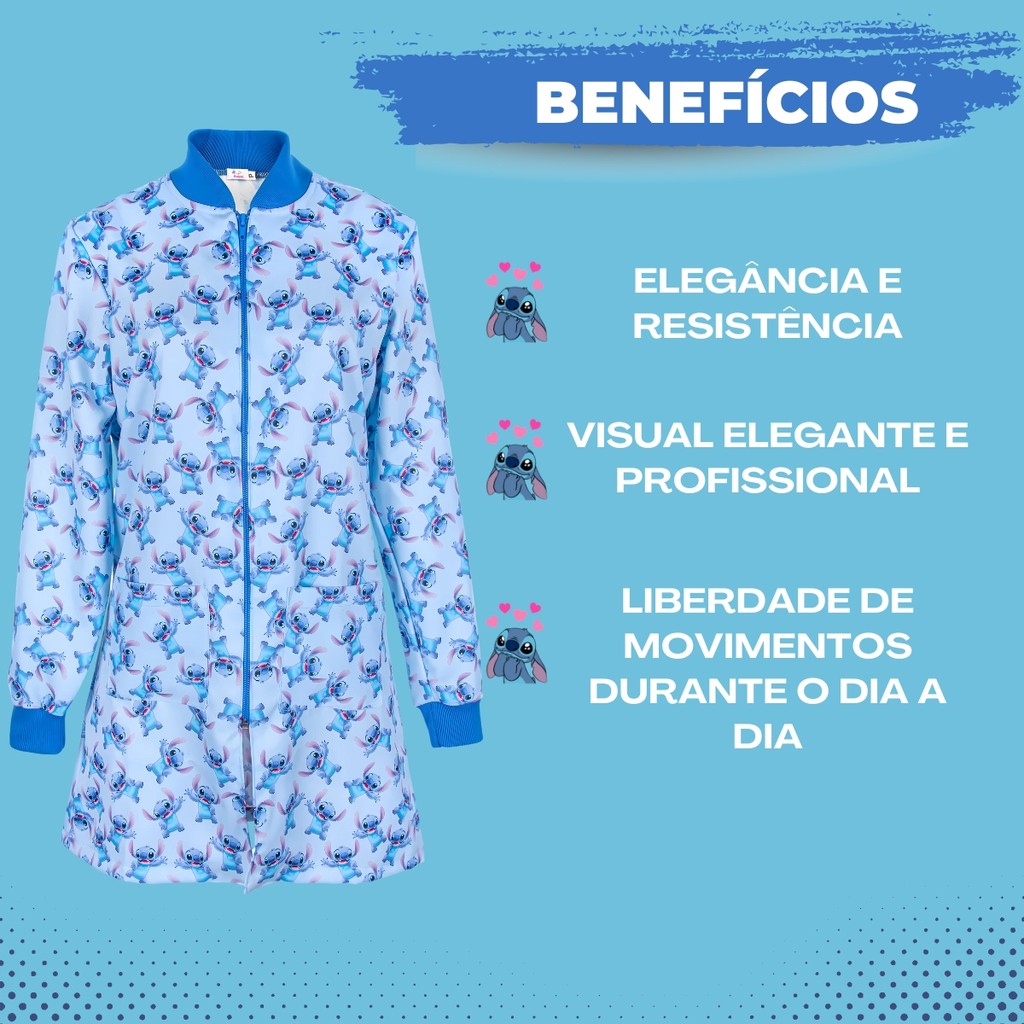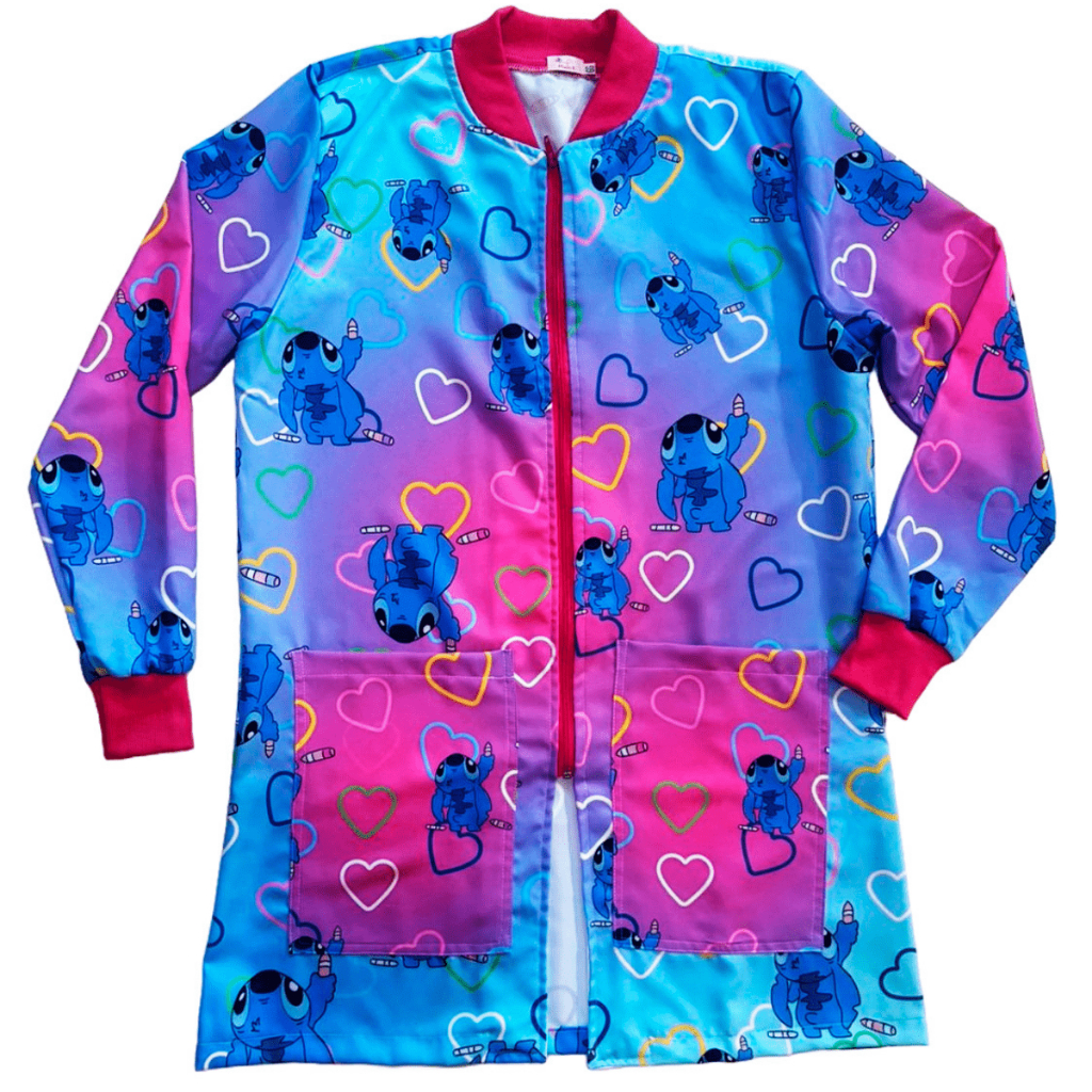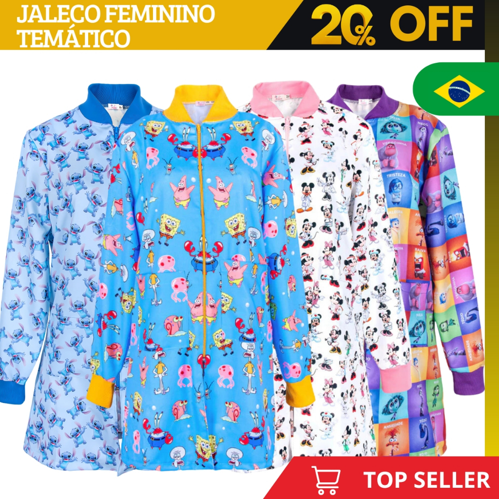 Jaleco Feminino Temático Bob Esponja, Stitch, Estilo e Conforto para Profissionais