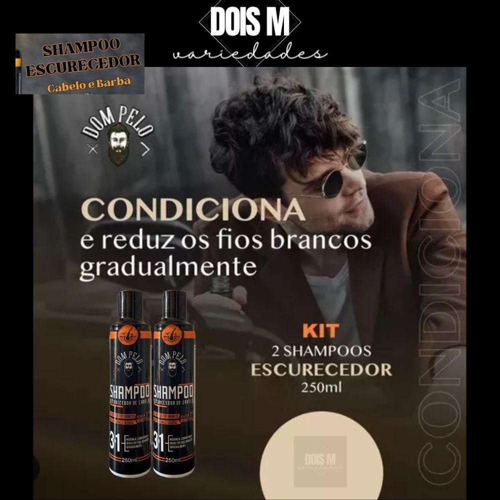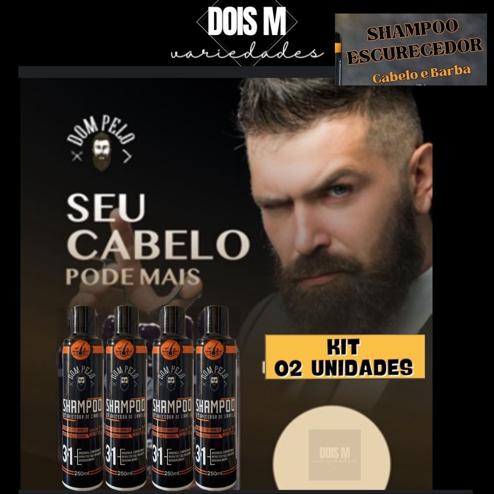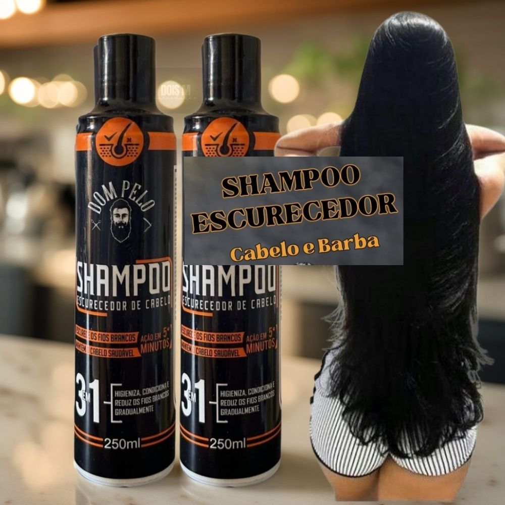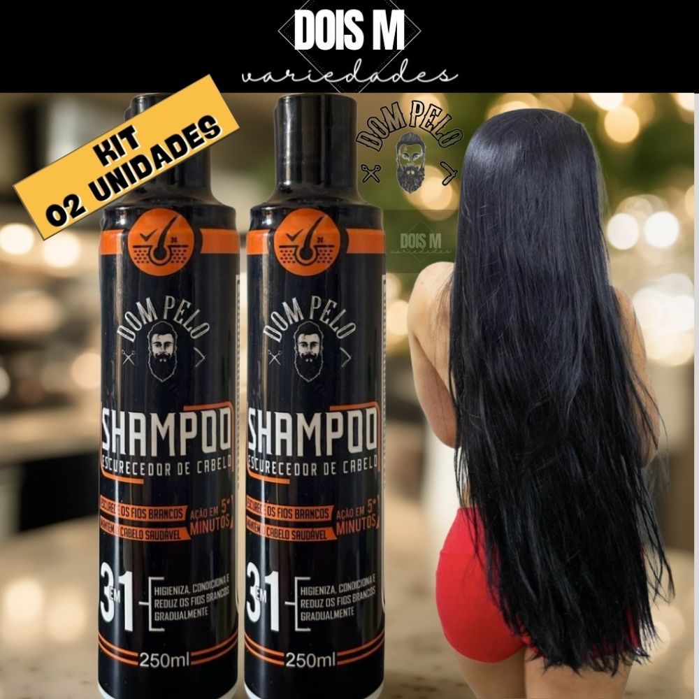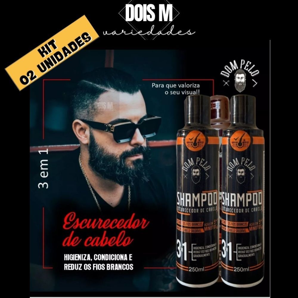 Shampoo Escurecedor De Cabelos Grisalhos Brancos Pretos Cor Intensa Kit 2 unidades Dom Pelo