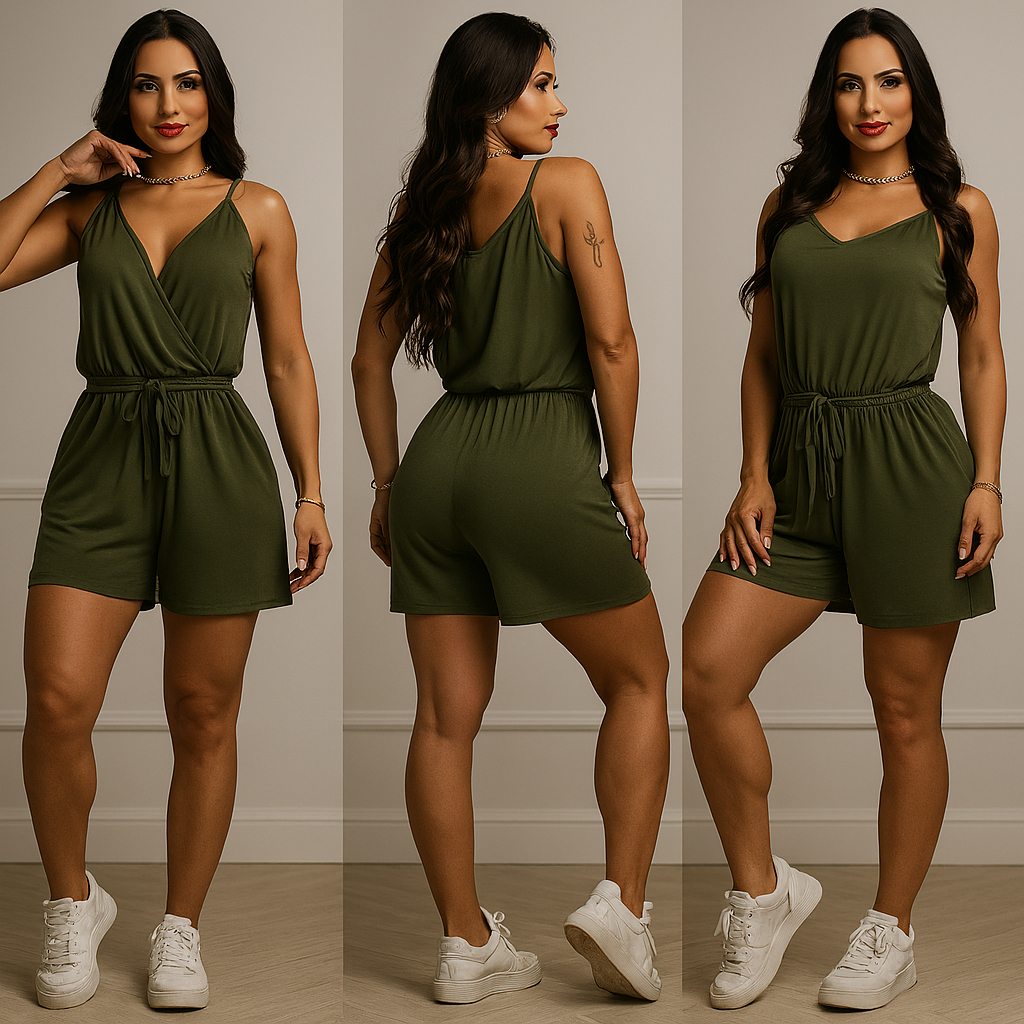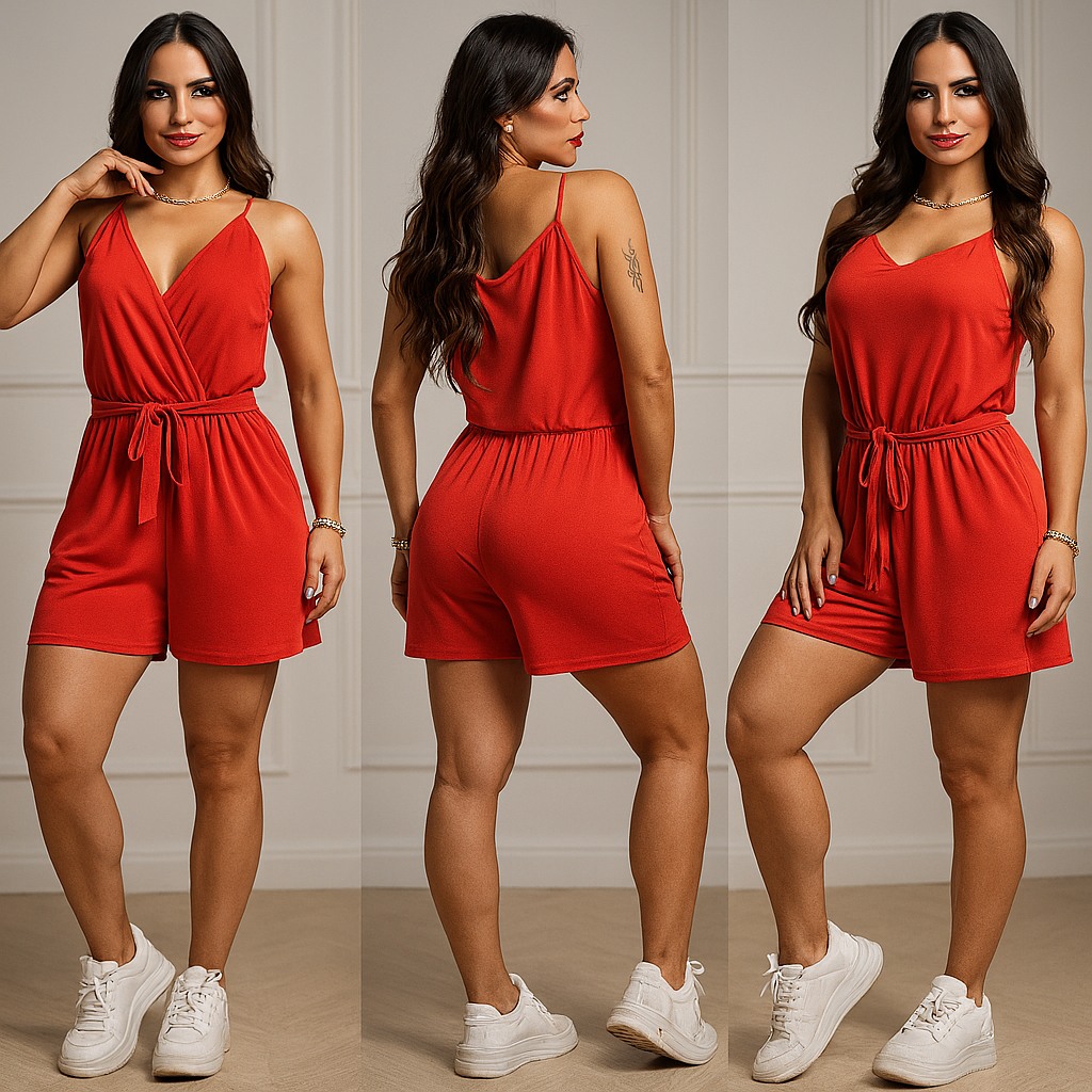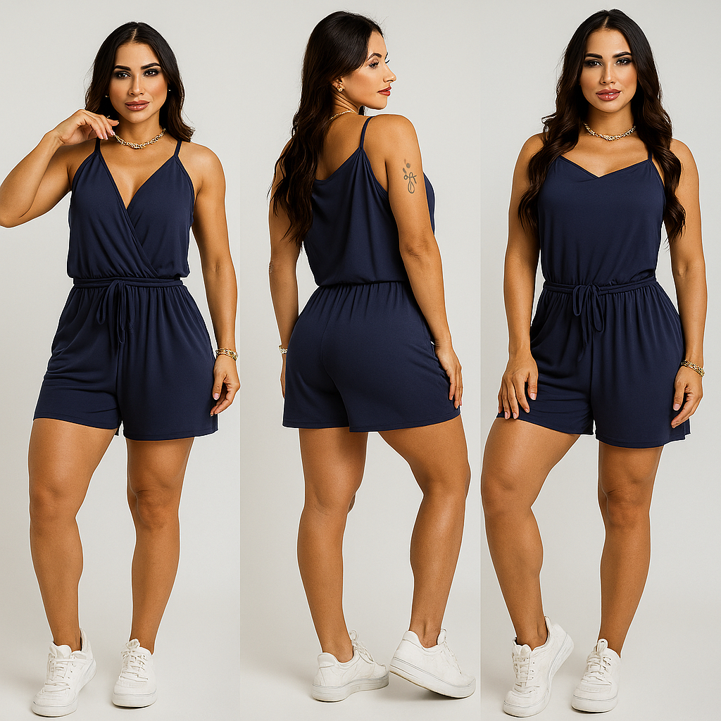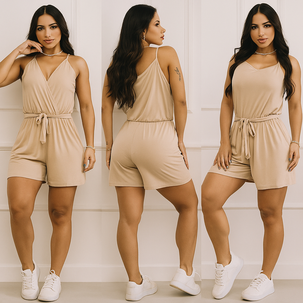 macaquinho elegante envio rapido mais vendidos curto alça liso duas versões com laço casual shortinho