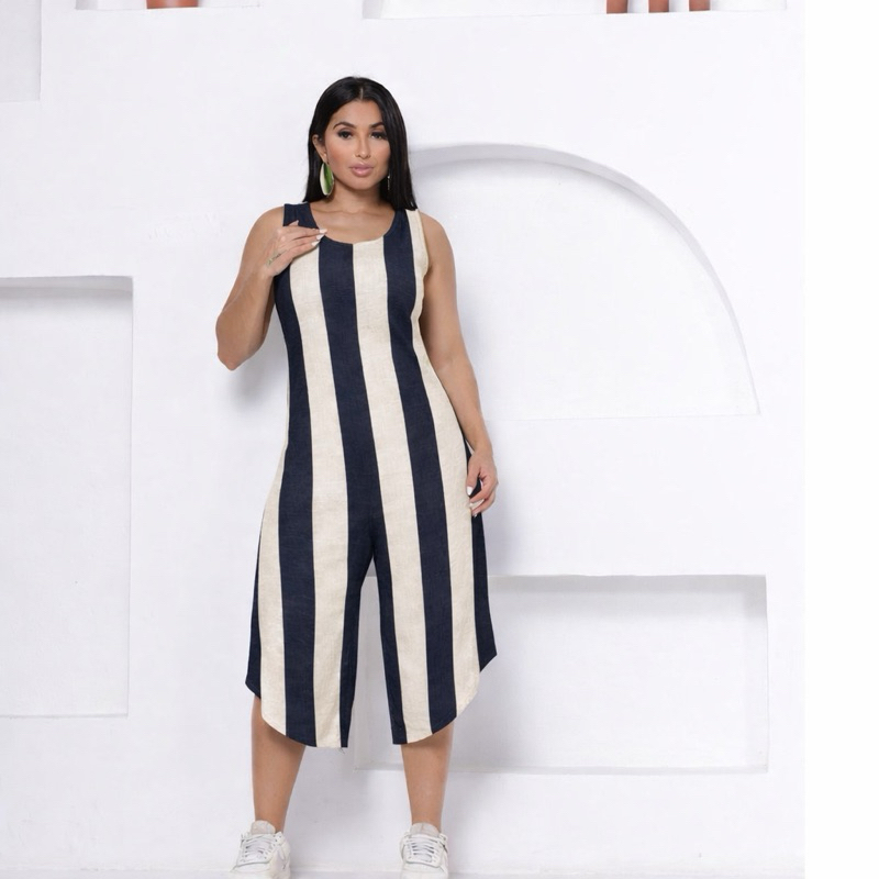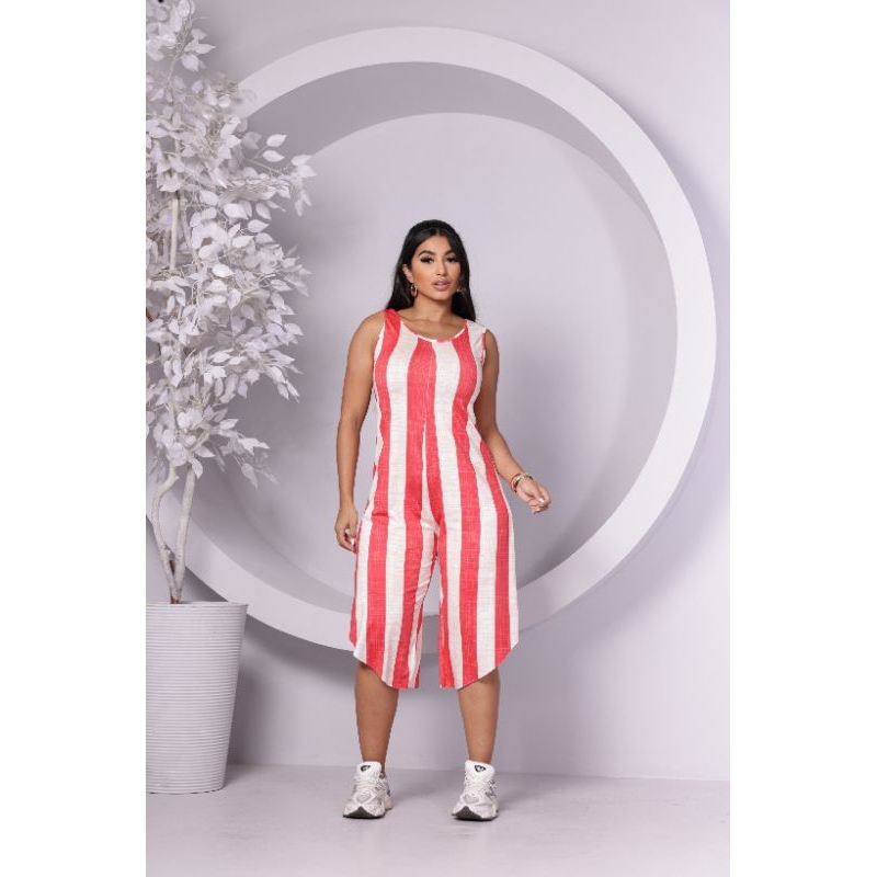 macacão envio Rápido casual midi pantacurt listrado festa soltinho moda feminino lançamento mais vendidos