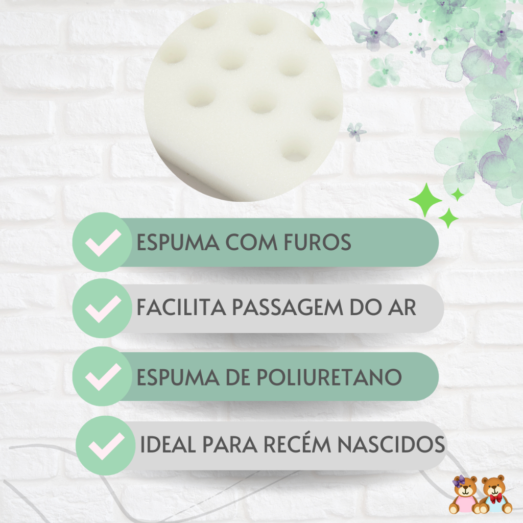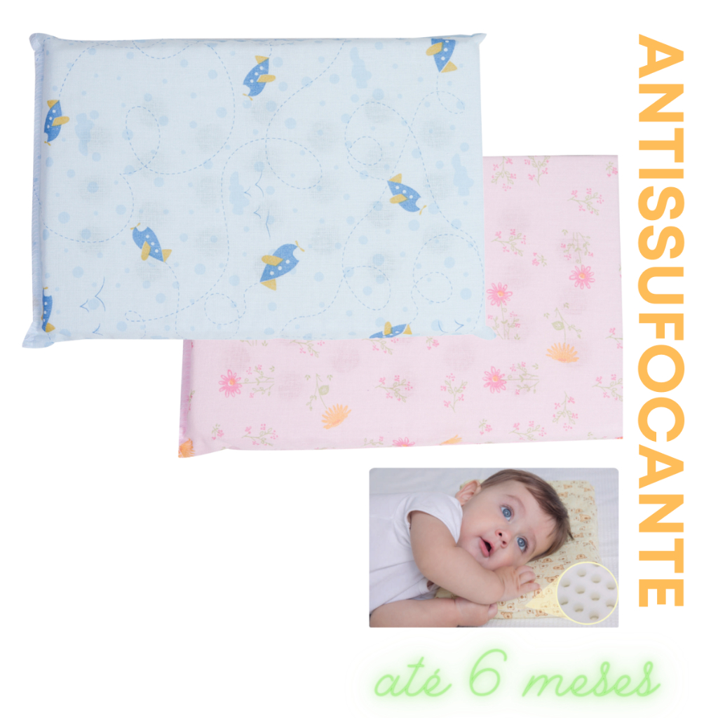 Travesseiro Para Bebê ANTI SUFOCANTE Estampado Espuma com Furinhos Indicado para até 6 meses