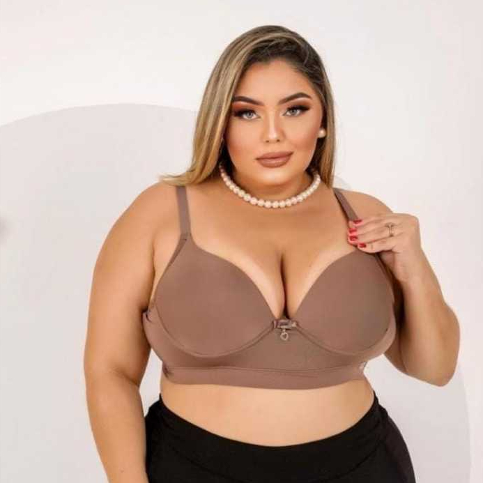 Sutiã Plus Size Sem Renda Reforçado com Bojo Liso Alça Larga Feminino Sustentação e Conforto RIZ LINGERIE
