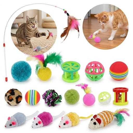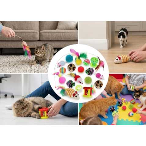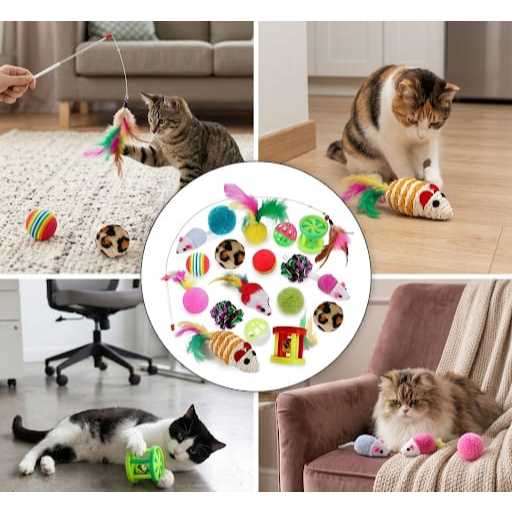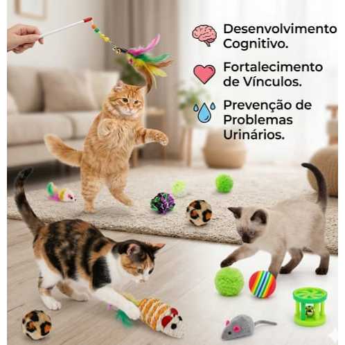 Kit 7 Brinquedos para Pet Varinha Ratinho Bolinha Gatinho filhotes e adultos - Envio imediato