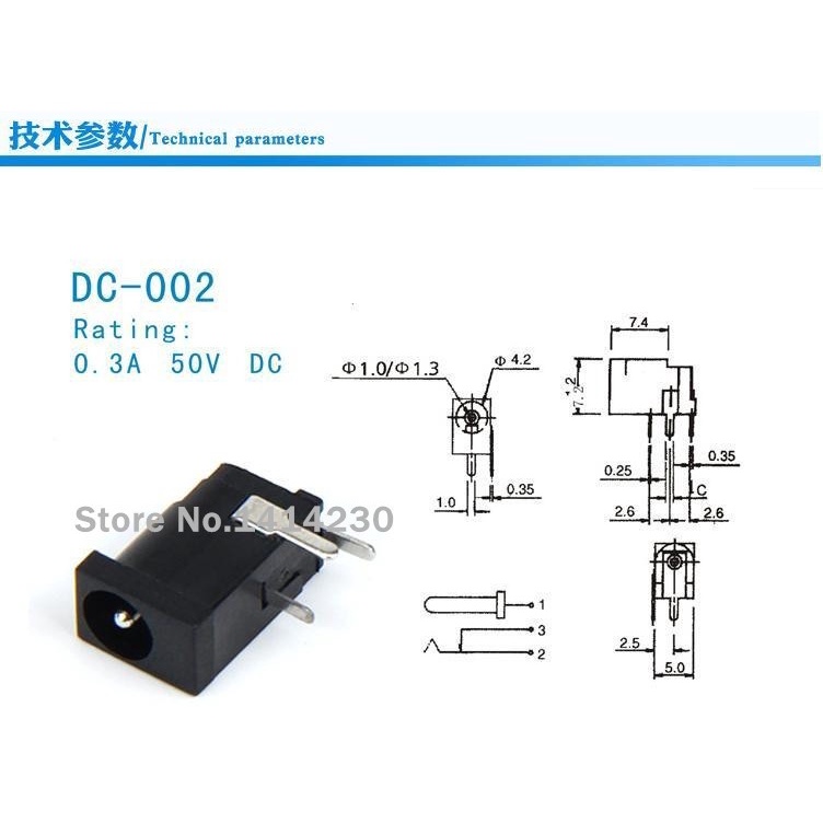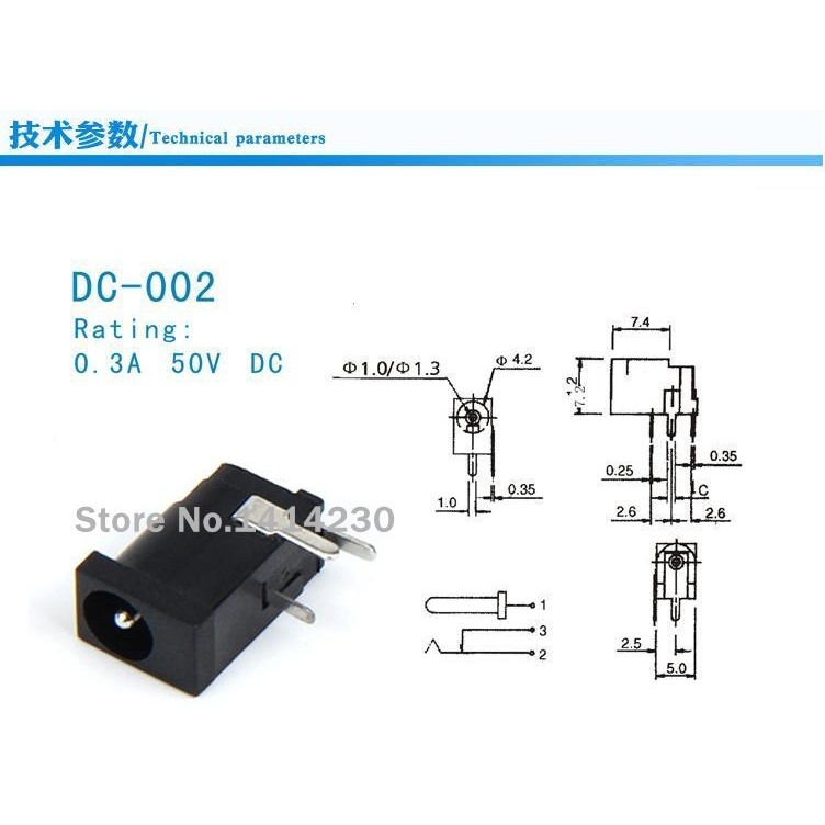 Conector Soquete Dc-002 Power Jack Plug Fêmea 3.5x1.3mm