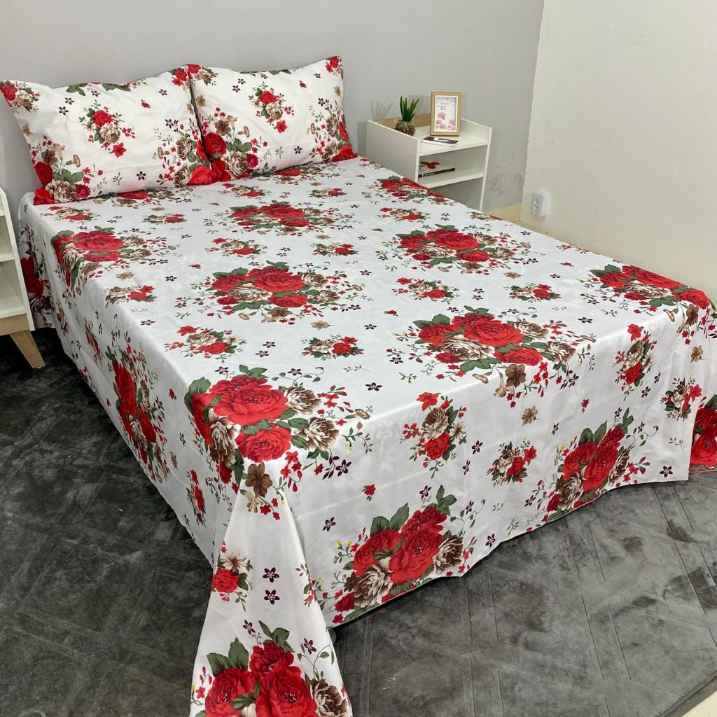 Jogo de lençol cama casal 3 peças percal microfibra oferta