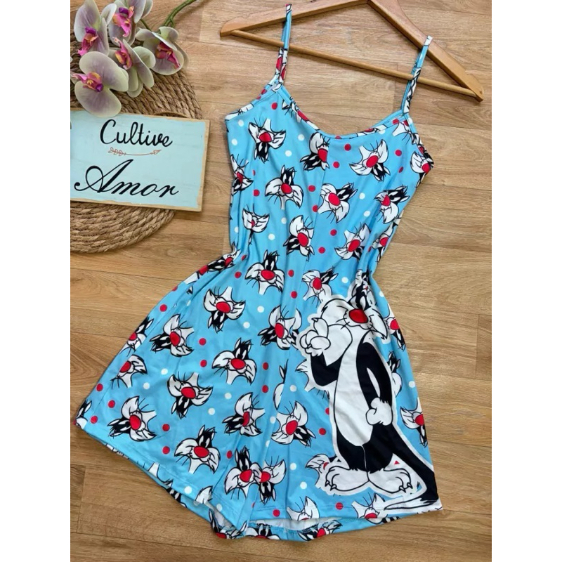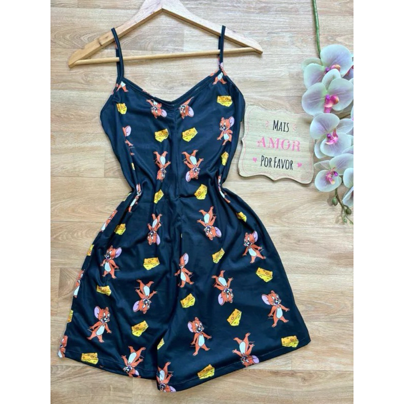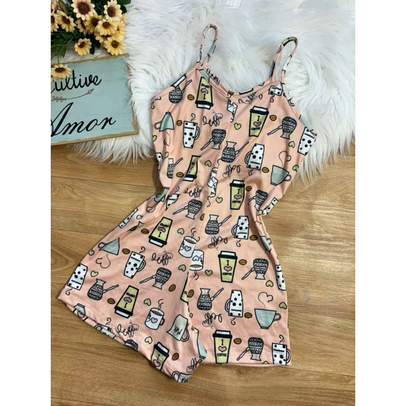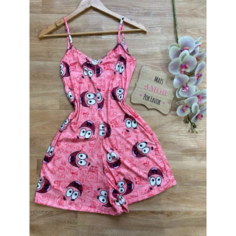Macaquinho de dormir feminino estampado confortável.