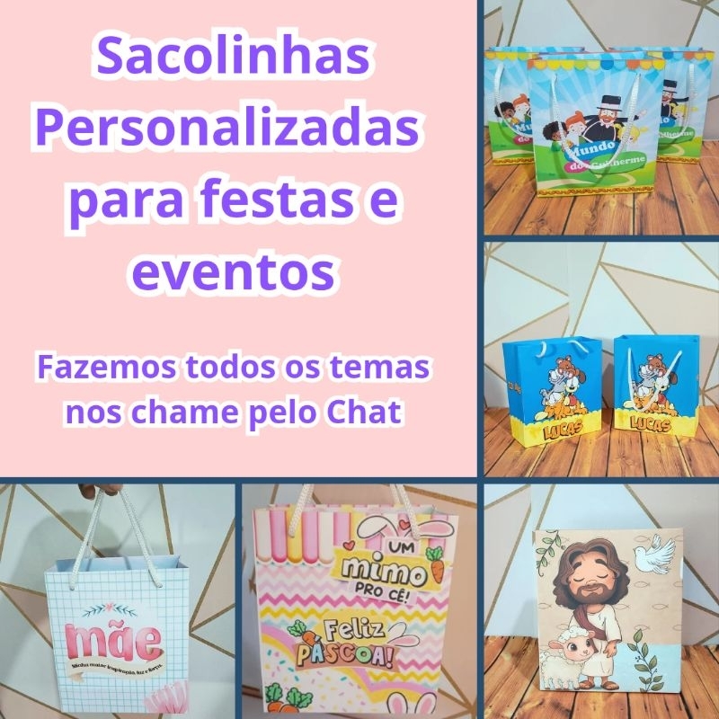 Sacolinha Personalizadas Todos os Temas Pegue e Monte