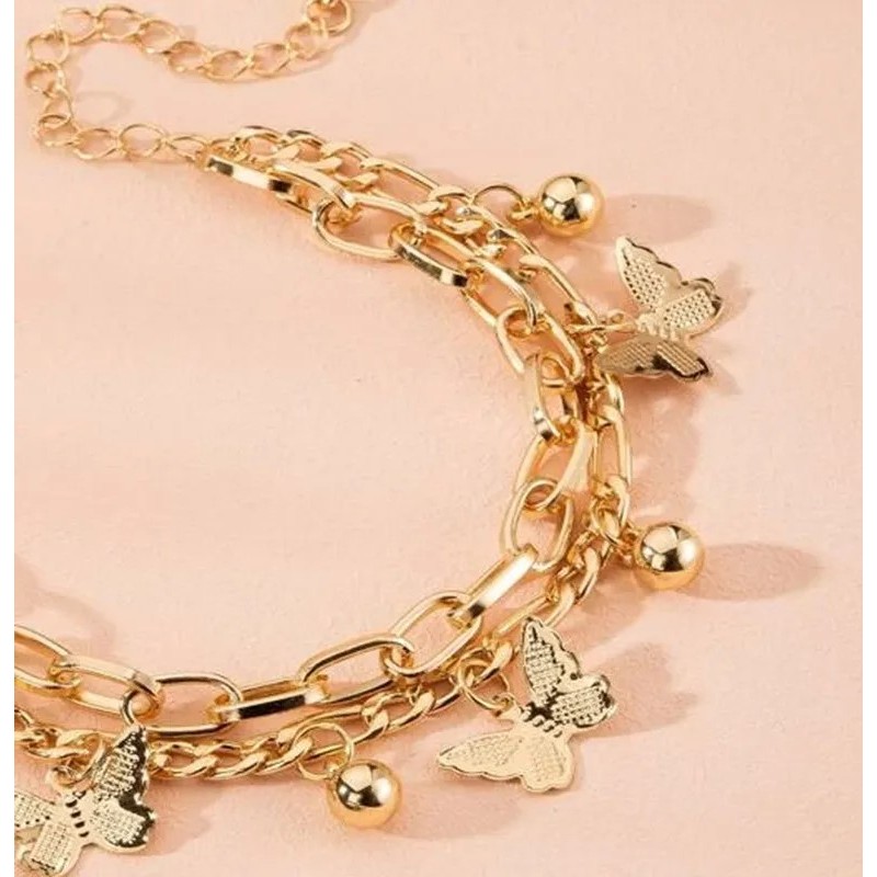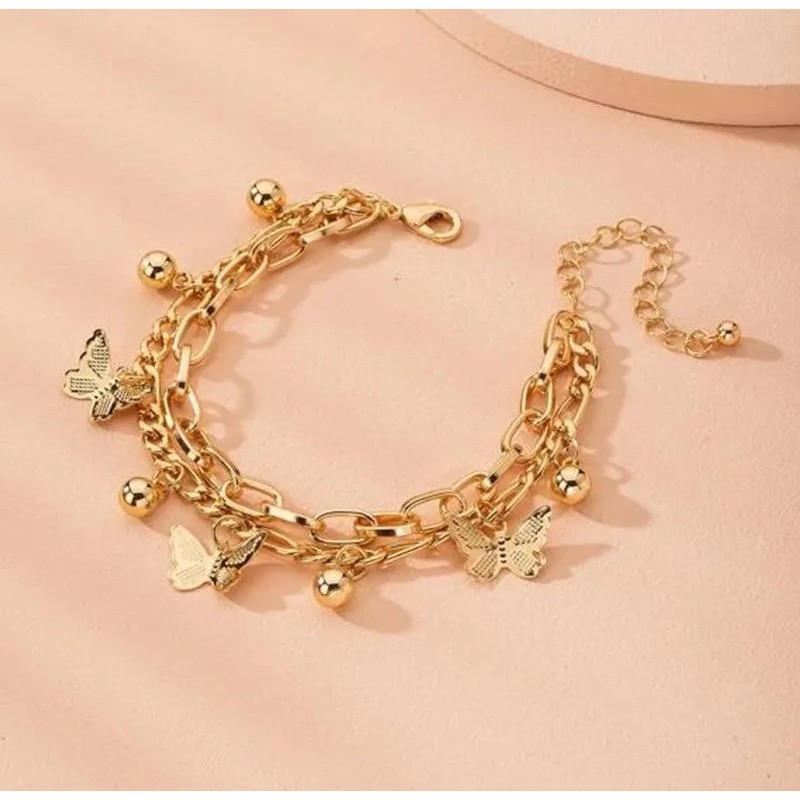 Pulseira Borboleta Feminina Dourada Banhada Ouro Prata 925 Qualidade Folheado