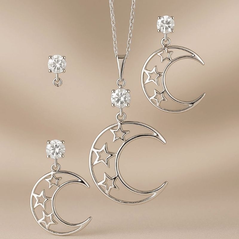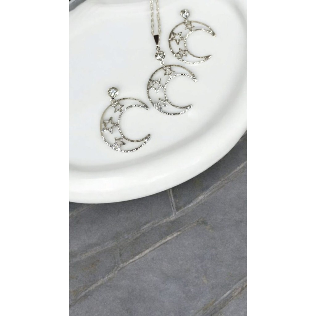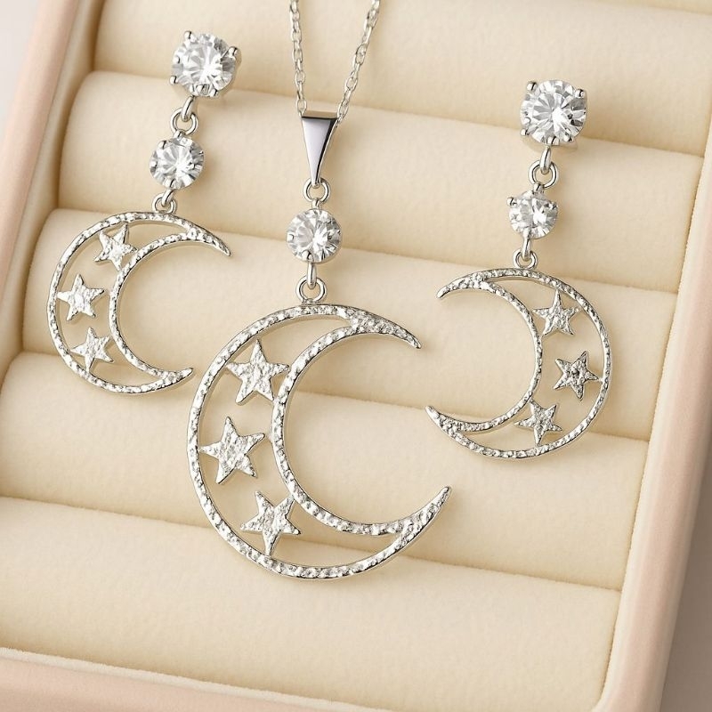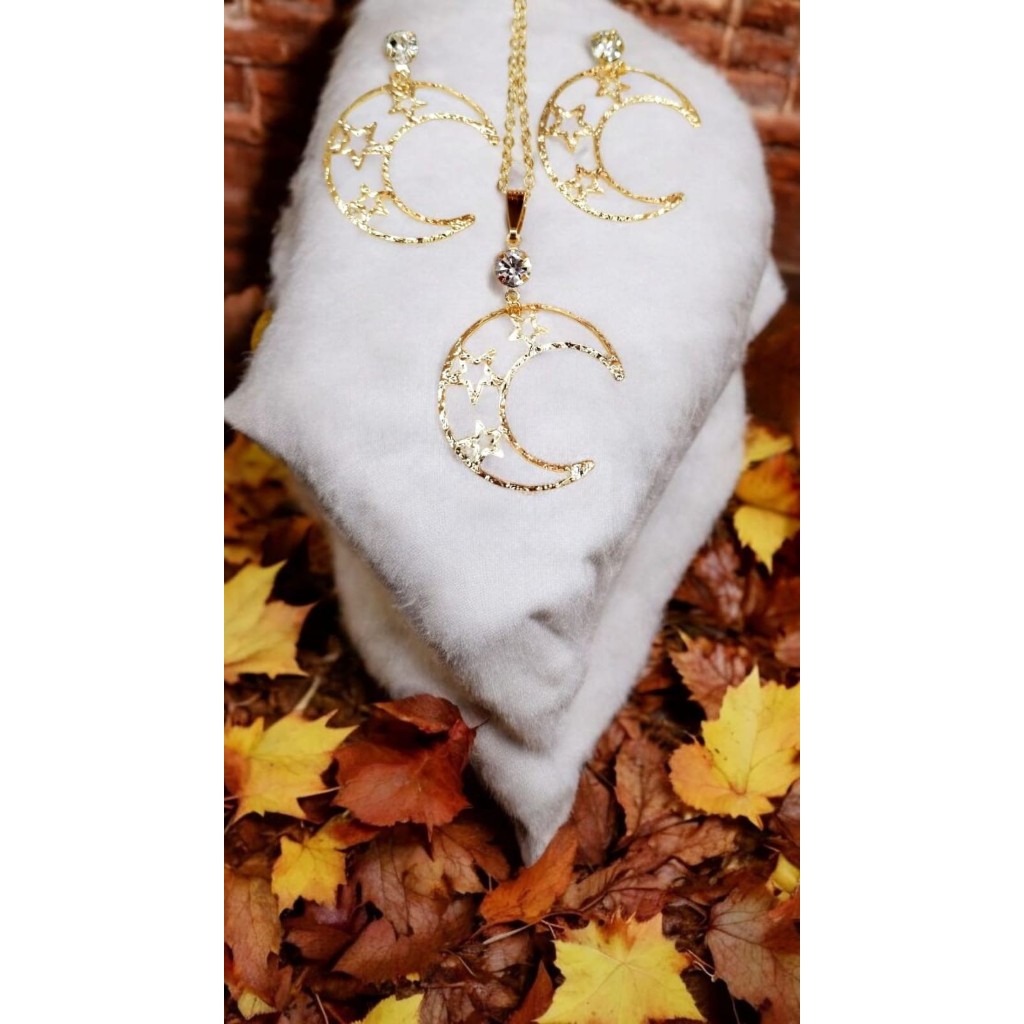 Kit Colar + Brinco Lua e Estrela Vazado Folheado