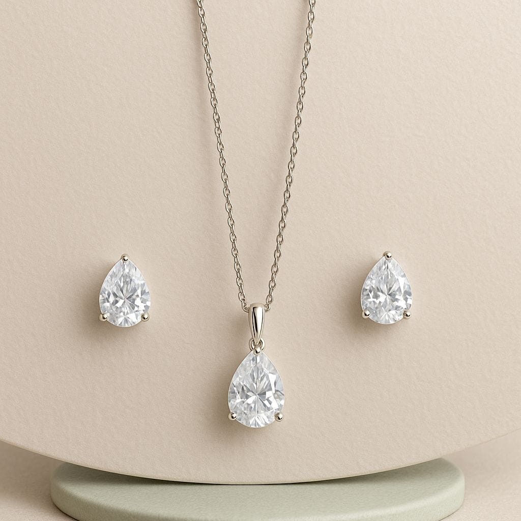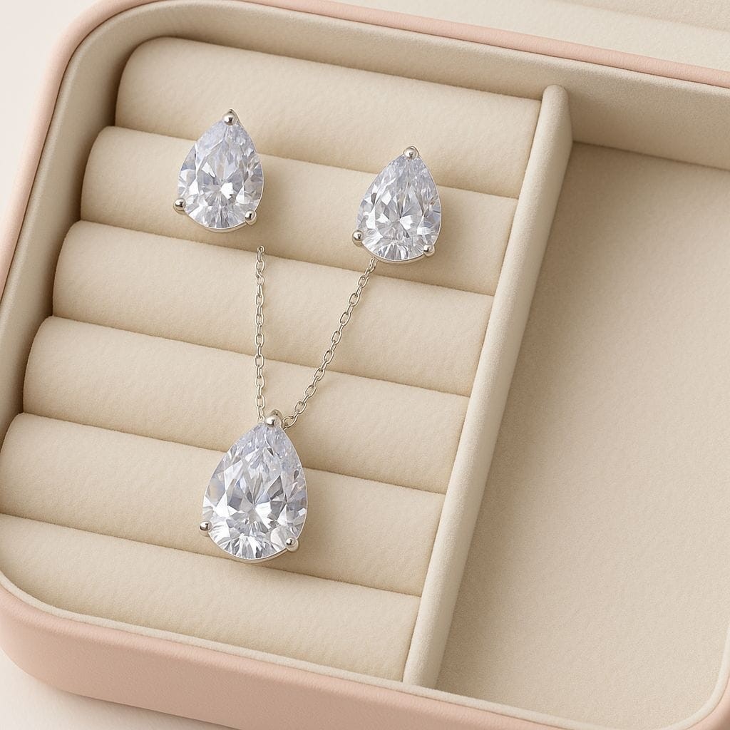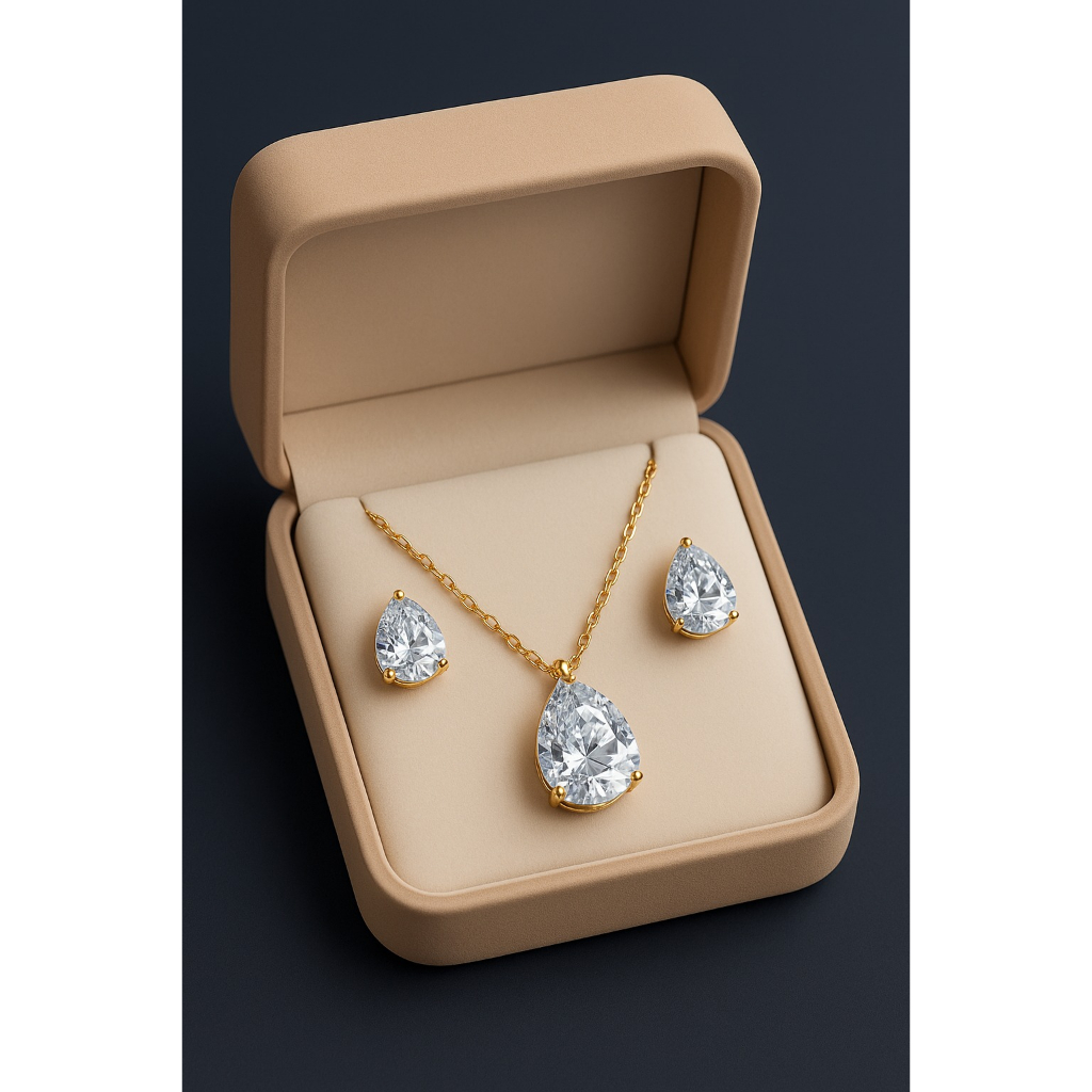 Kit Colar + Brinco Gota Zircônia Folheado Prata Dourado Delicado Feminino