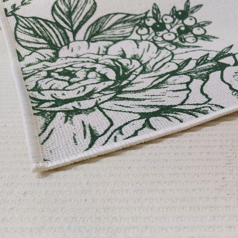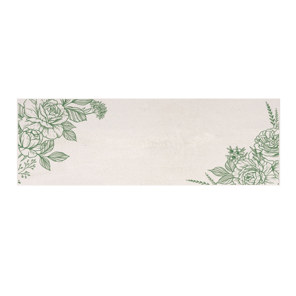 Tapete Passadeira Natural 45x140cm Flores/Verde - Antiderrapante