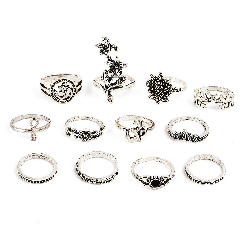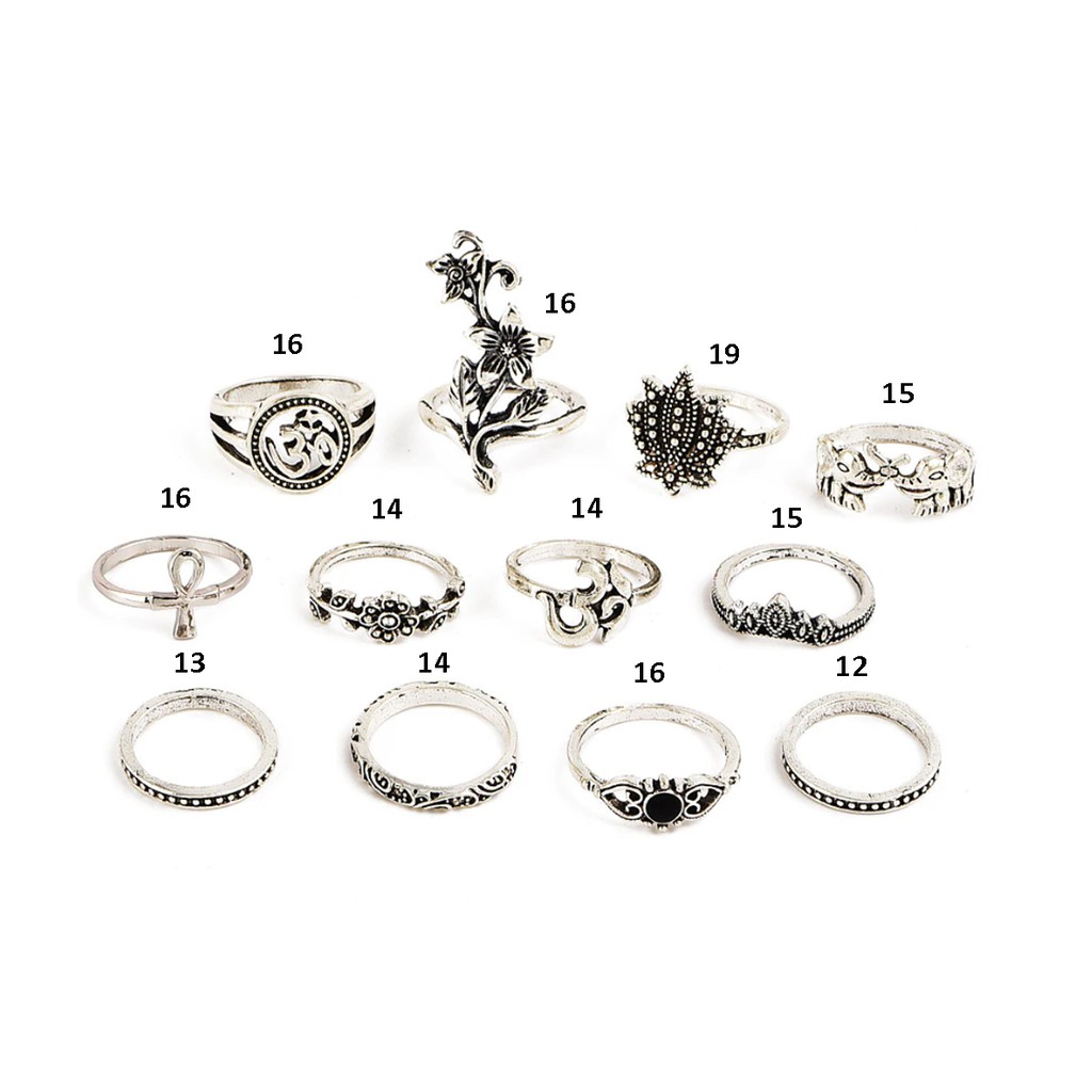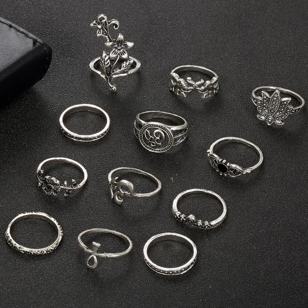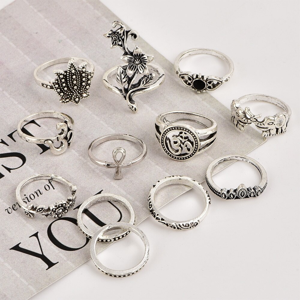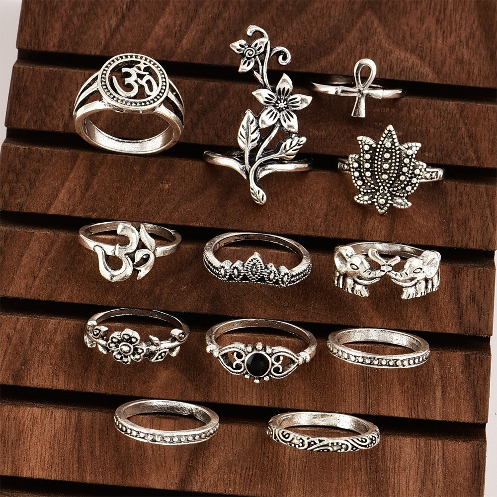 12 Anéis Detalhes Coroa Lótus Flores Elefantes