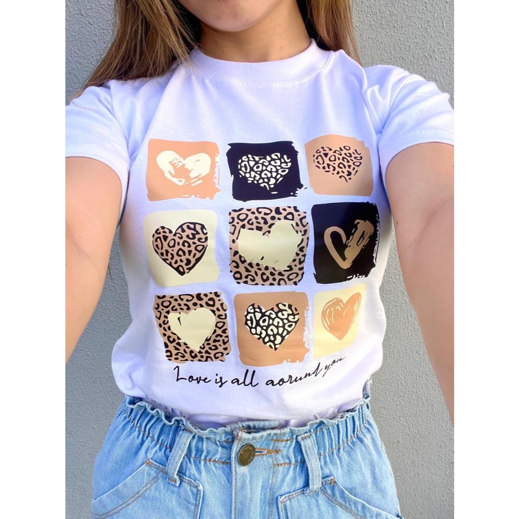 CAMISETA T-SHIRT FEMININA 100% ALGODÃO TENDENCIA MODA FEMININA