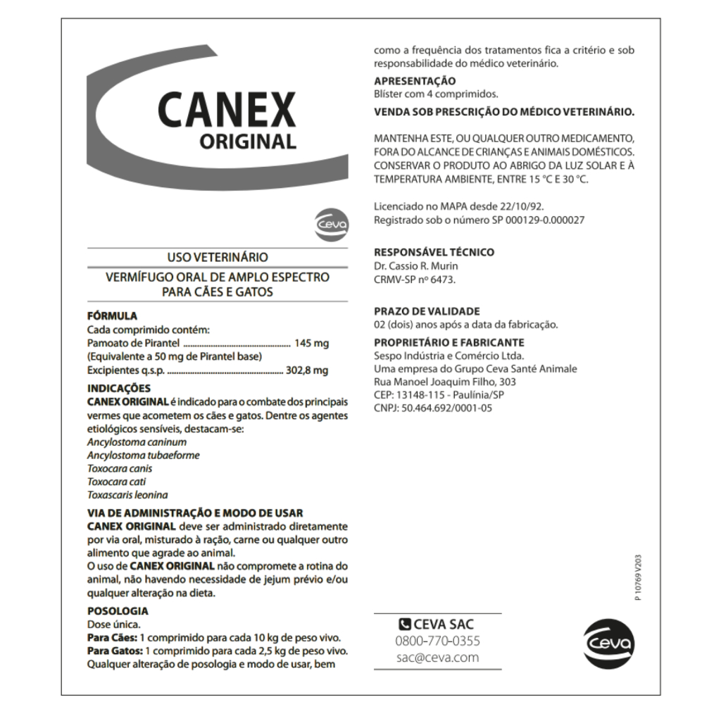 Remédio Pra Verme Para Gatos Caes Vermifugo Dose Unica Canex 4 Comprimidos