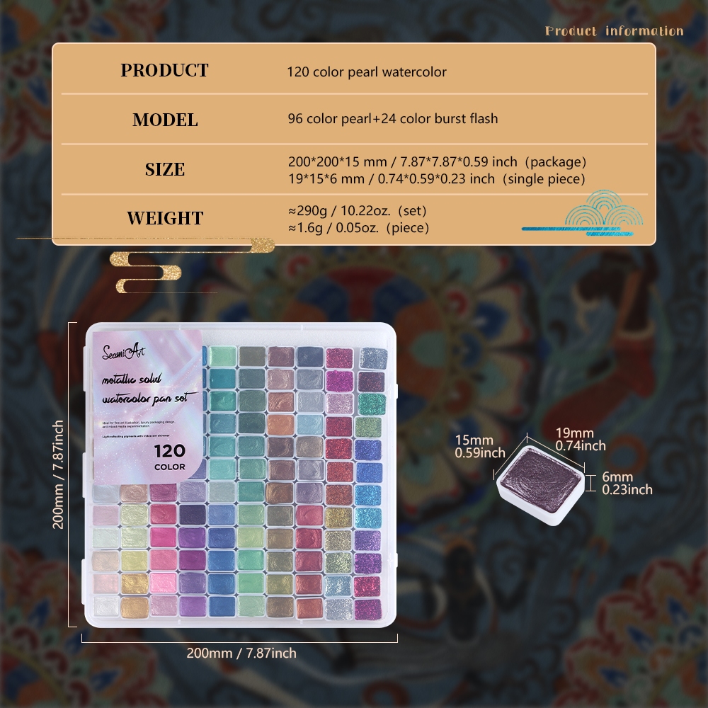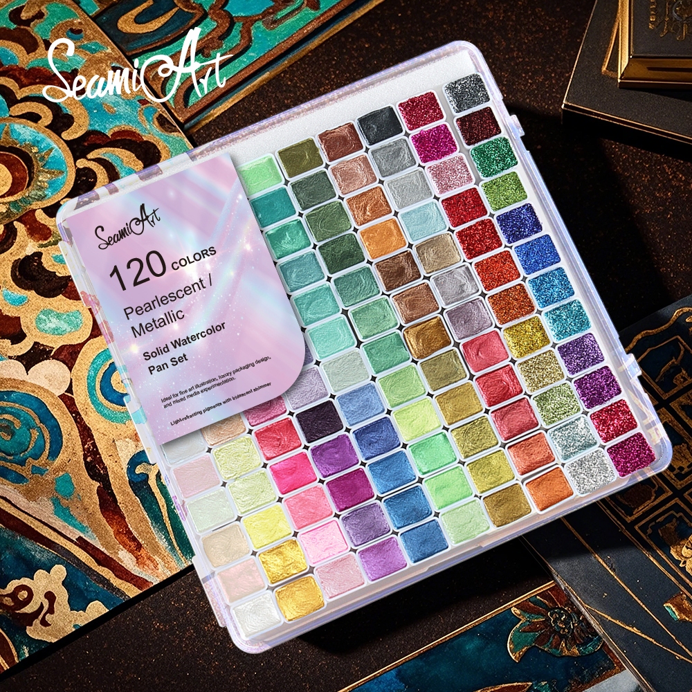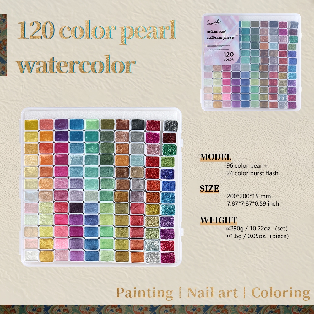 SeamiArt 20/24/36/48/60/120 Cores Perolado Metálico Shimmer Conjunto De Aquarela Sólida Para Desenho Pintura Nail Art