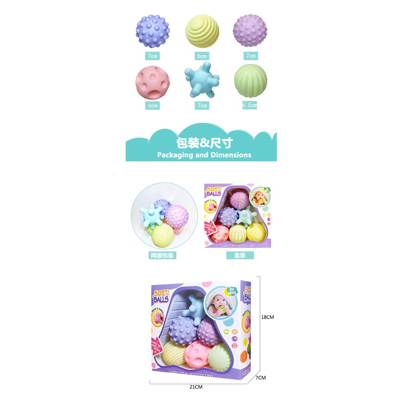 6 Bolas Bola De Toque Baby Touch Ball Massagem Percepção Táctil Grasp Treinamento Soft Brinquedo Educacional