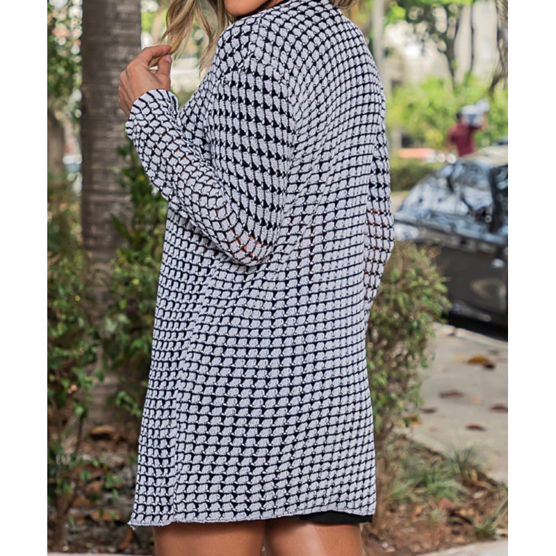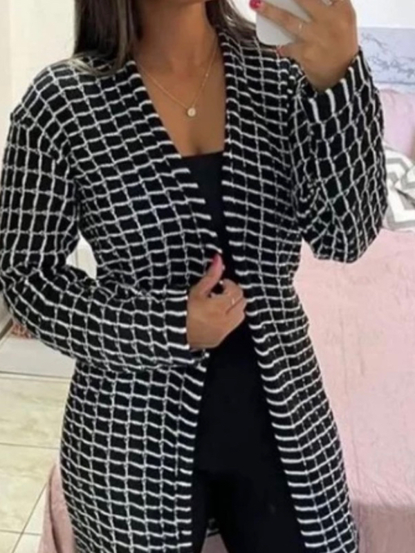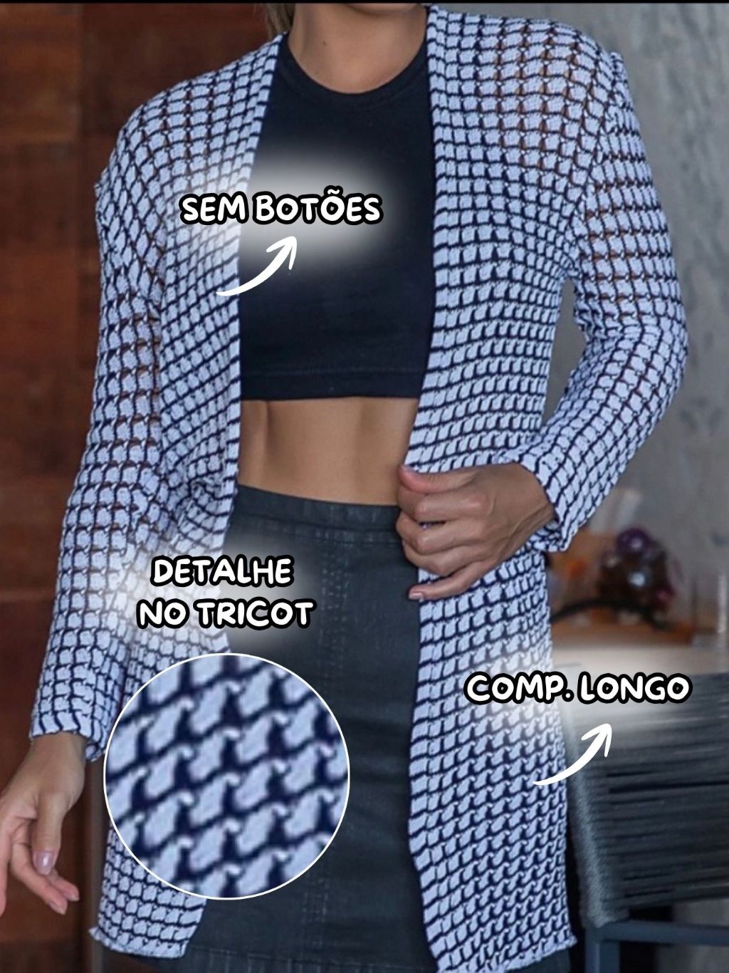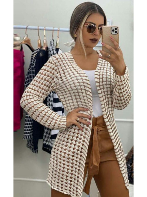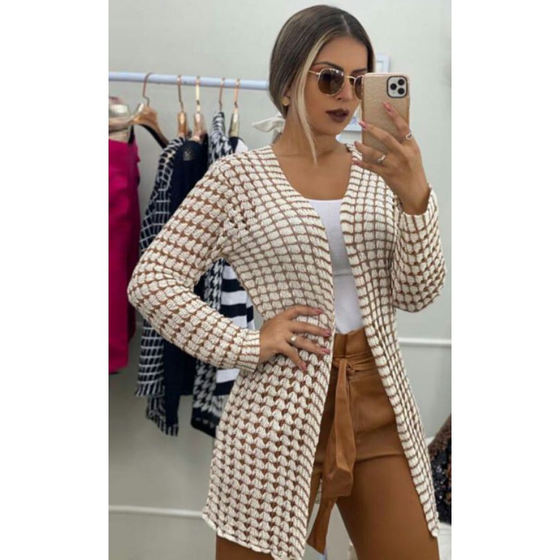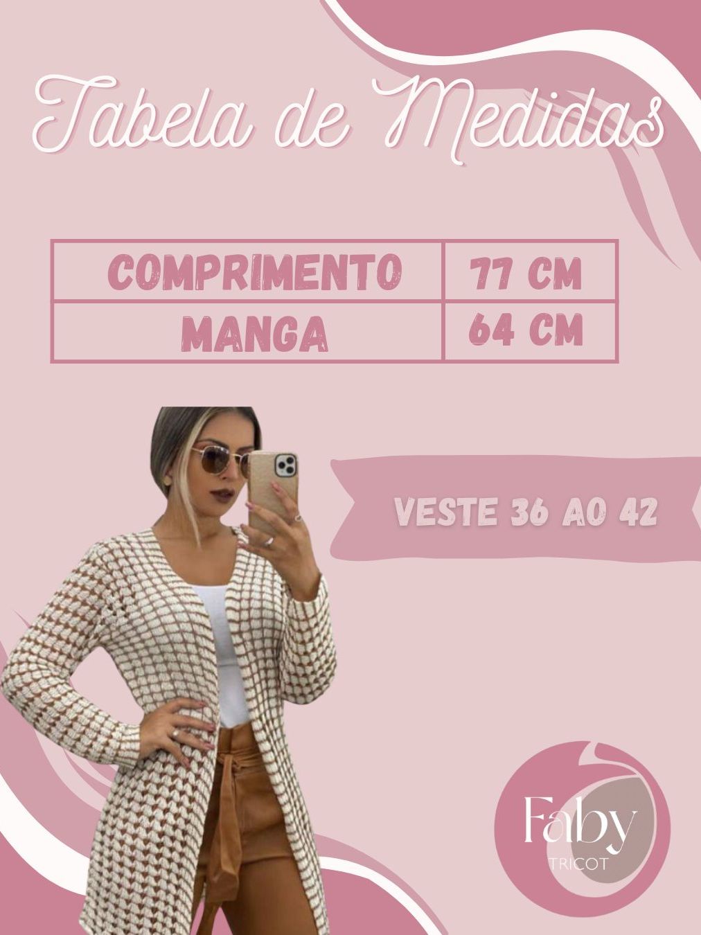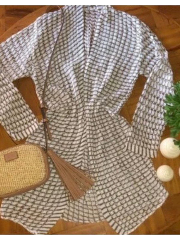 Casaco Kimono Feminino Tricô Cardigan Quadriculado Manga Longa Inverno 36 ao 42 Faby Tricot