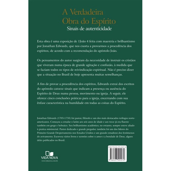 Livro A Verdadeira Obra Do Espírito | Jonathan Edwards | Editora Vida Nova