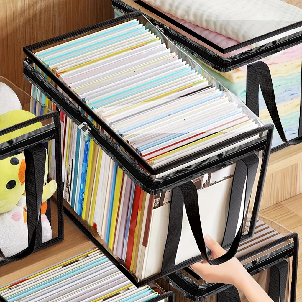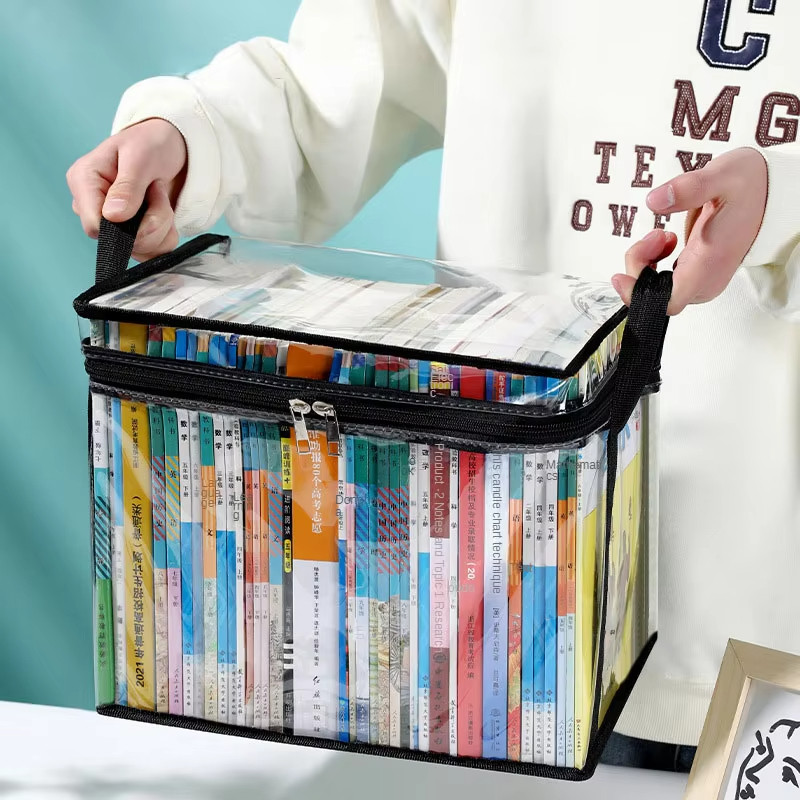 2 Pçs Dobrável Transparente Saco De Armazenamento De Livros Grande Capacidade Caixa Portátil À Prova De Poeira Dwaterpro