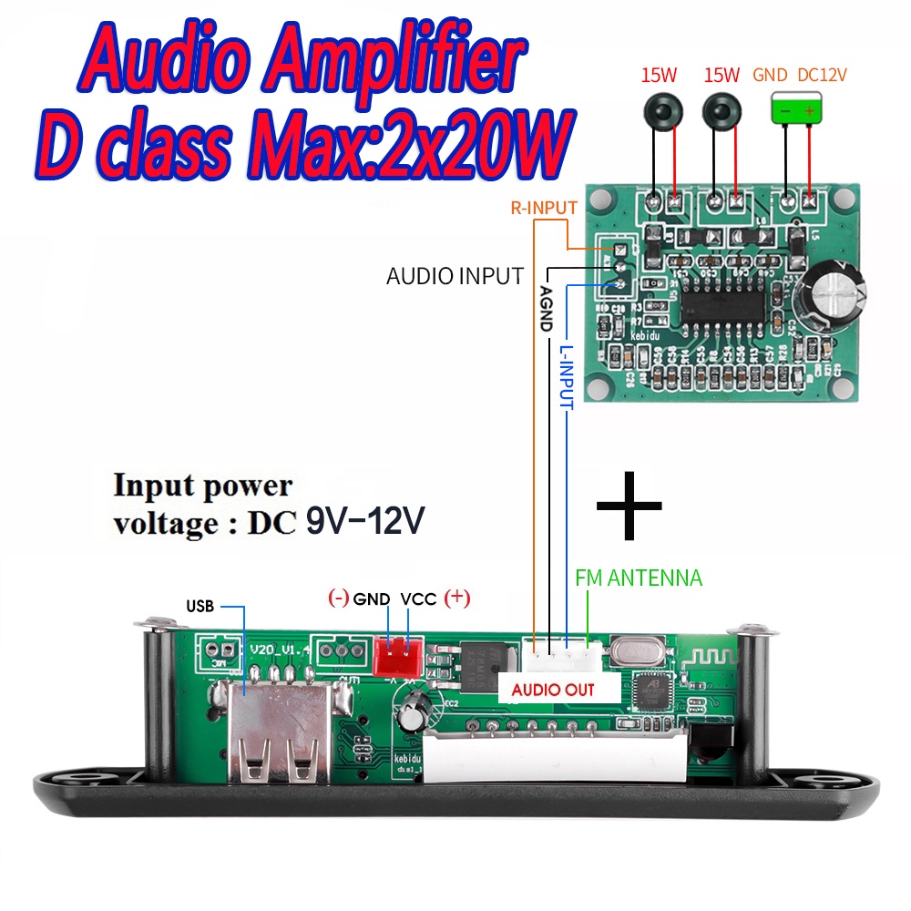 J&M 9 V 12 MP3 Módulo Decodificador Cebola Sem Fio Bluetooth 5.0 Com 40 W Amplificador FM AUX USB Cartão TF Para Stero