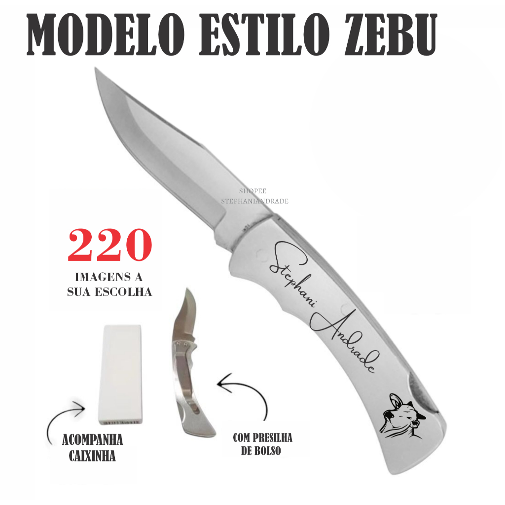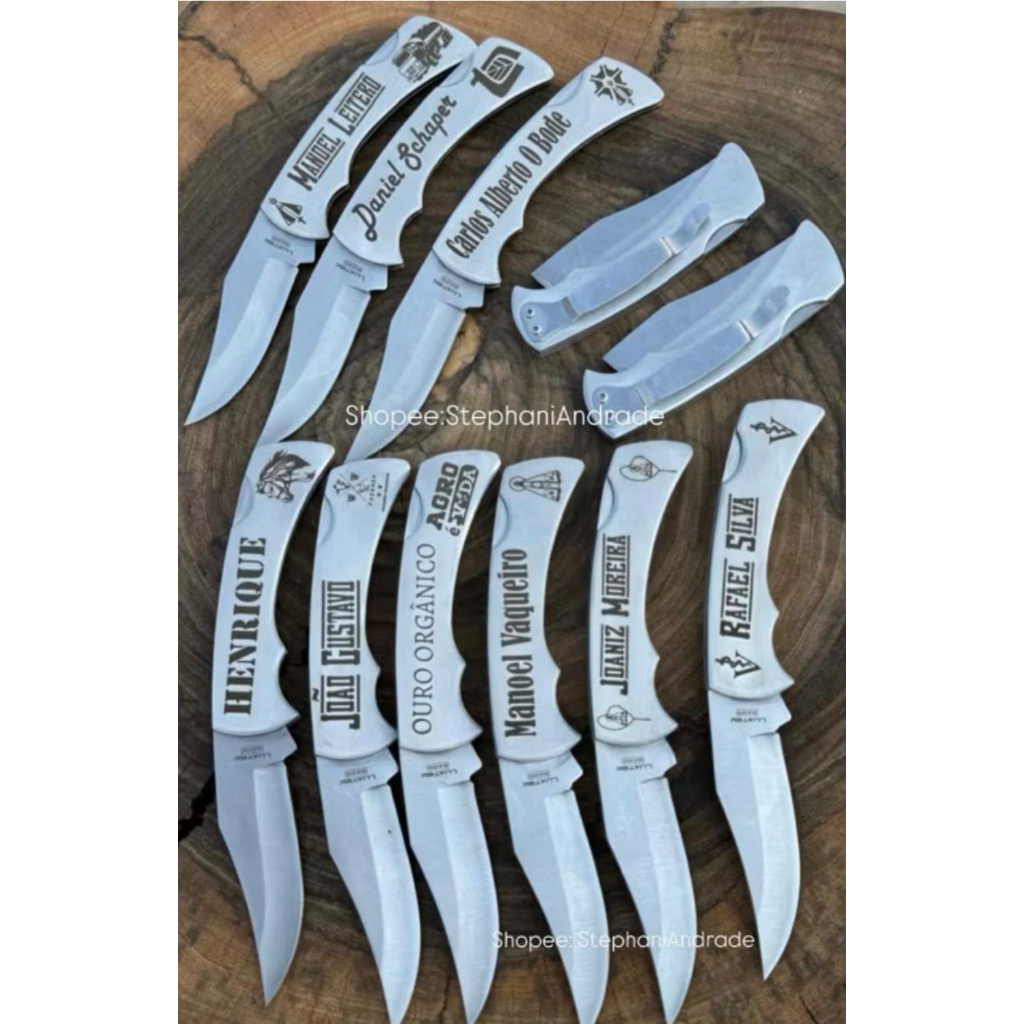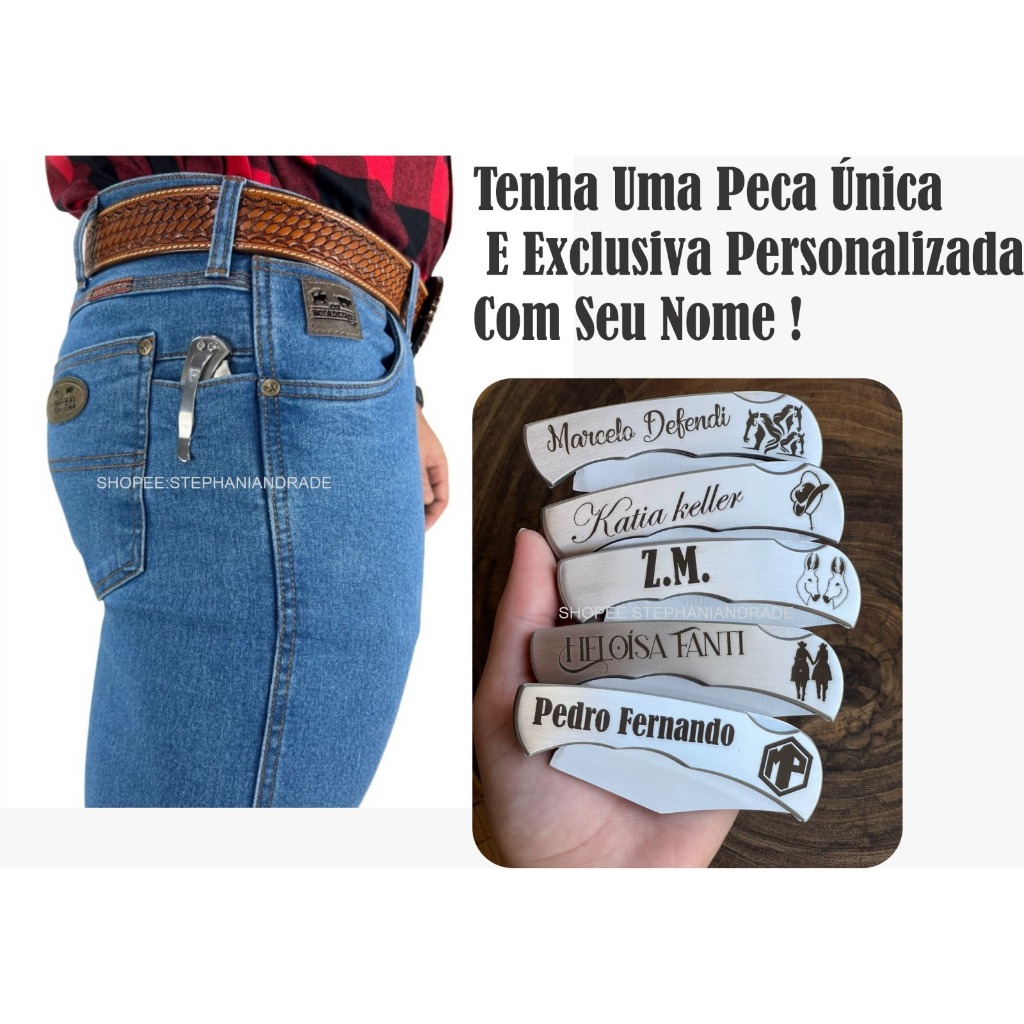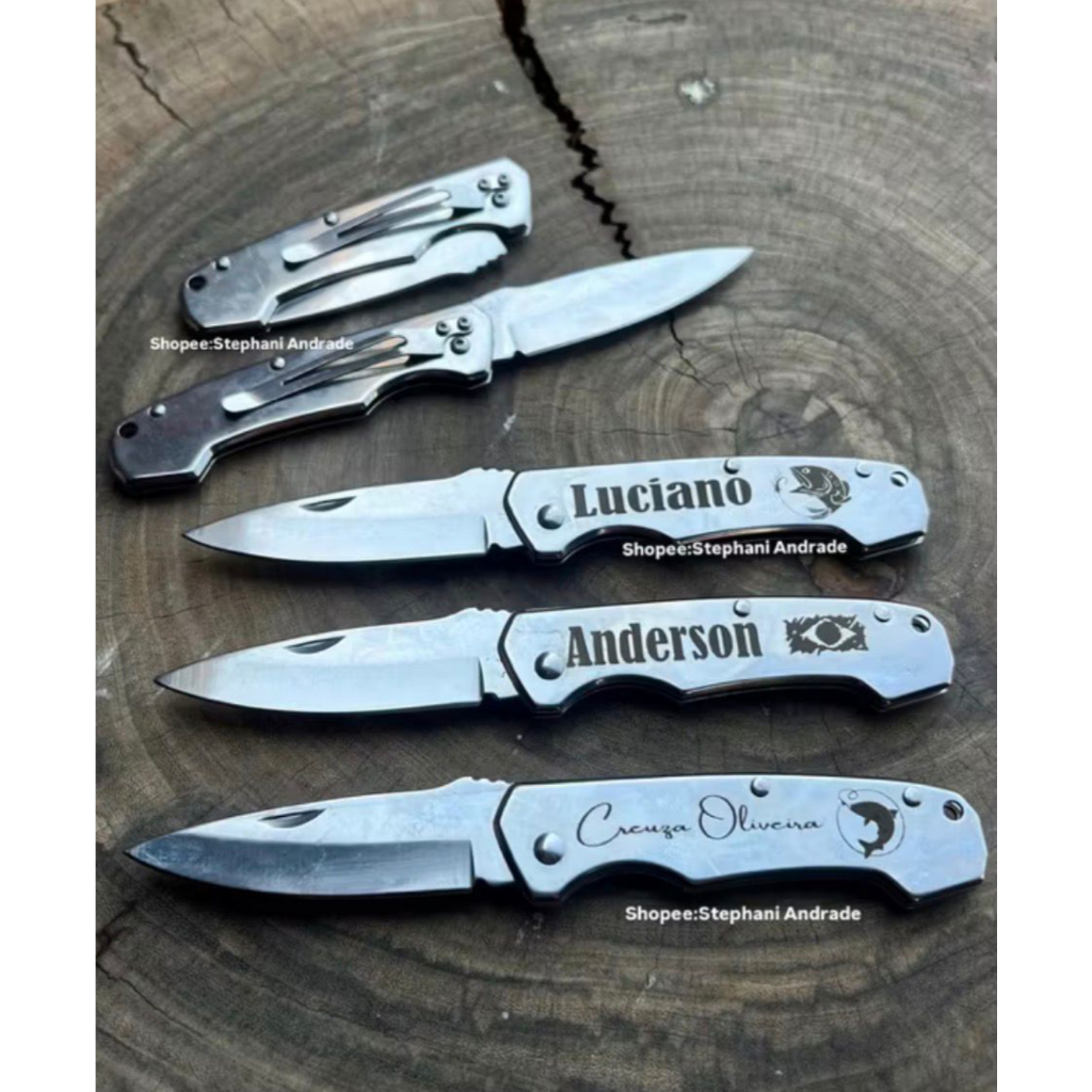 Canivete Inox Clip/Bolso Com Abridor na Lâmina Personalizado Seu Nome