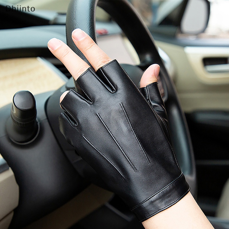 [Dhiint] Luvas Masculinas Sem Dedos De Couro Motor Punk Pretas Meio Dedo Ao Ar Livre Tático Masculino De Condução Em