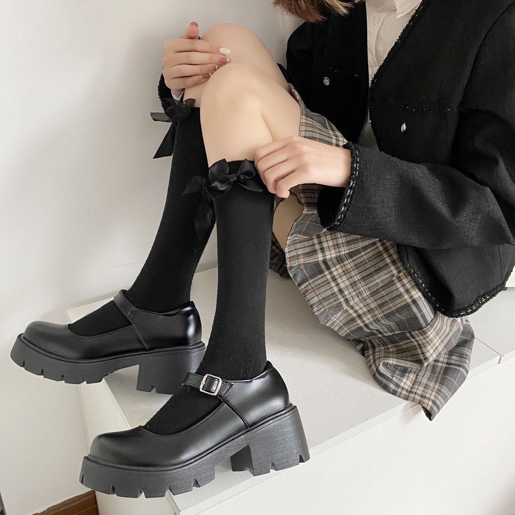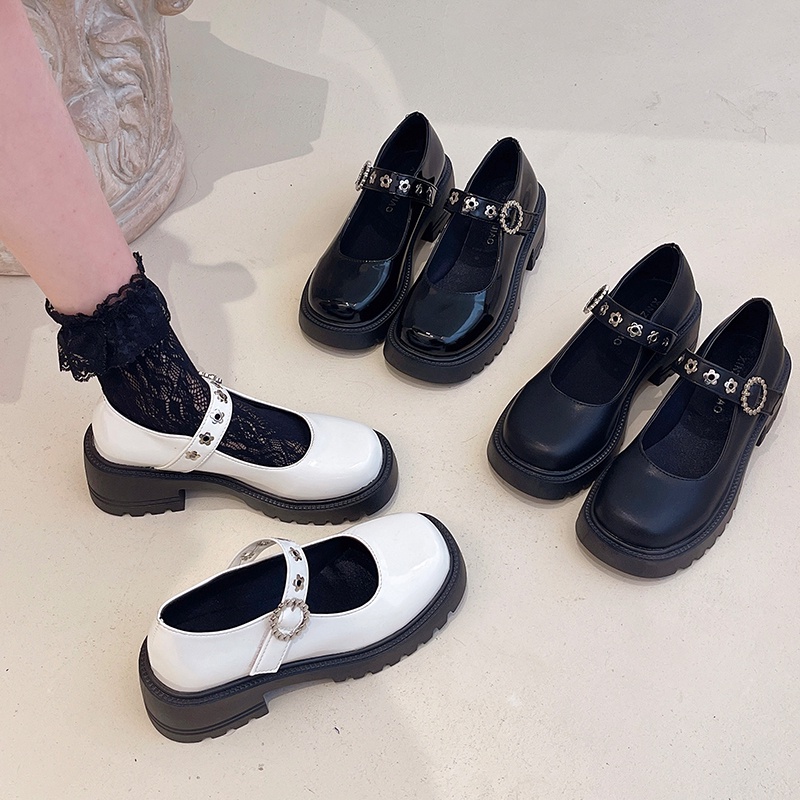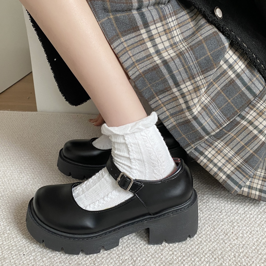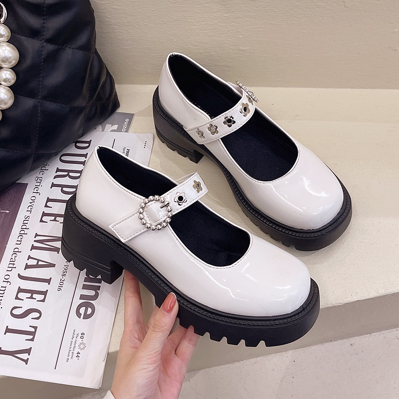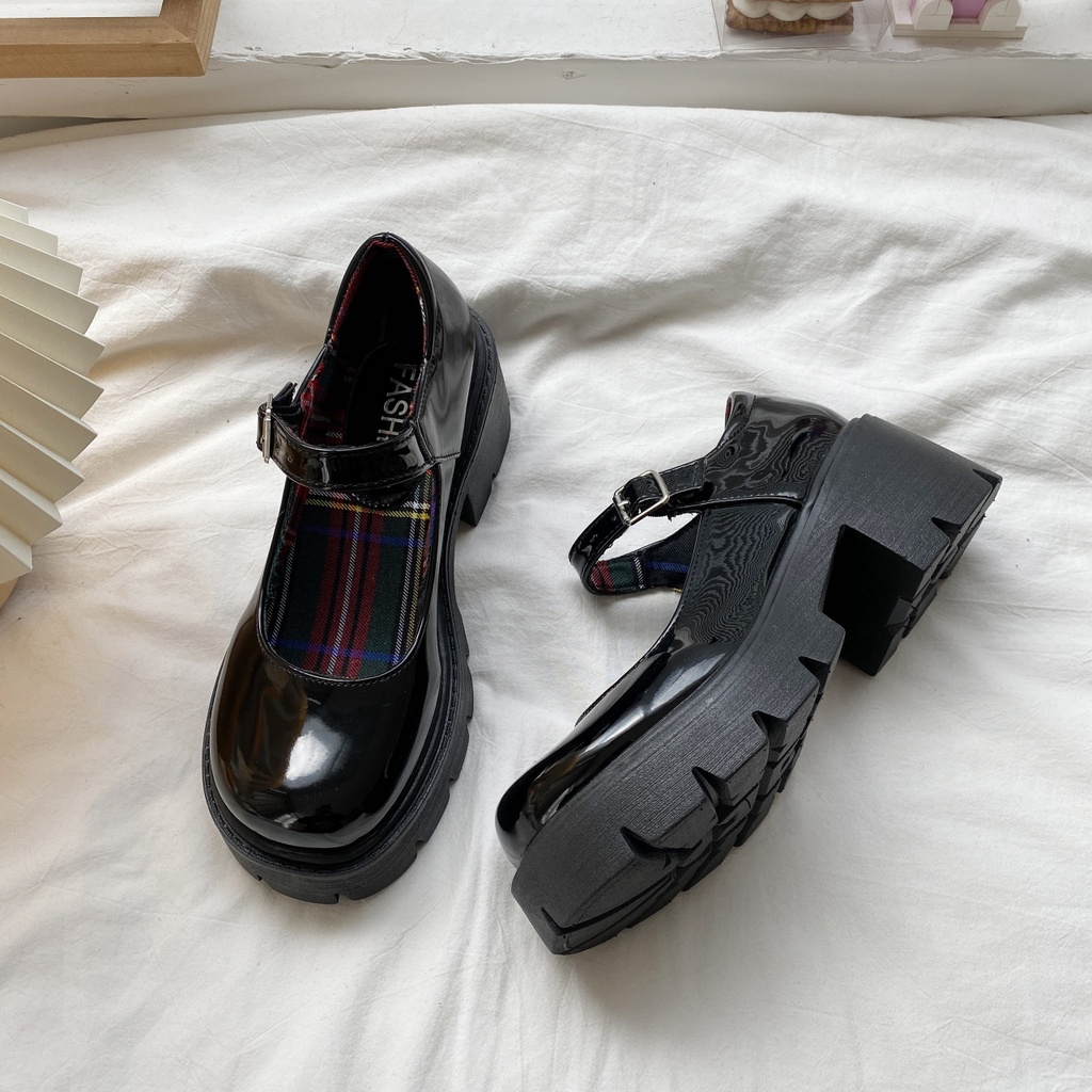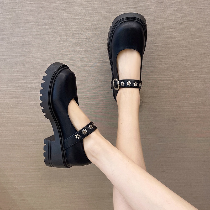 IELGY Sapato De Couro Feminino Mary Jane Estilo Britânico Com Solado Grosso