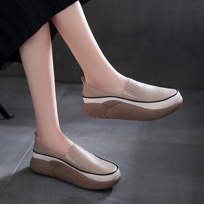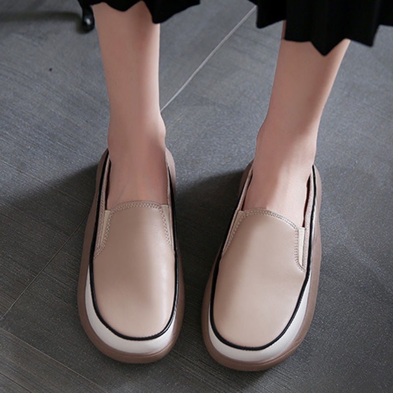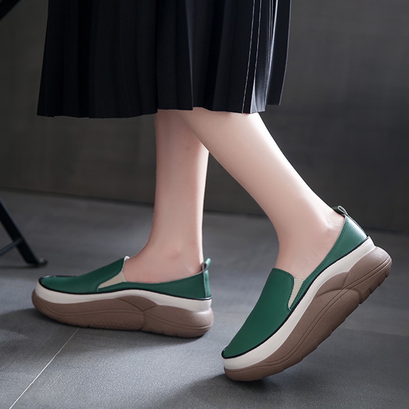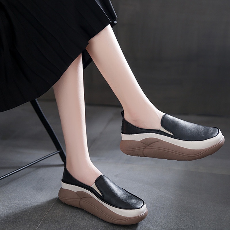 IELGY Mocassim Feminino Com Bico Redondo E Plataforma Retrô