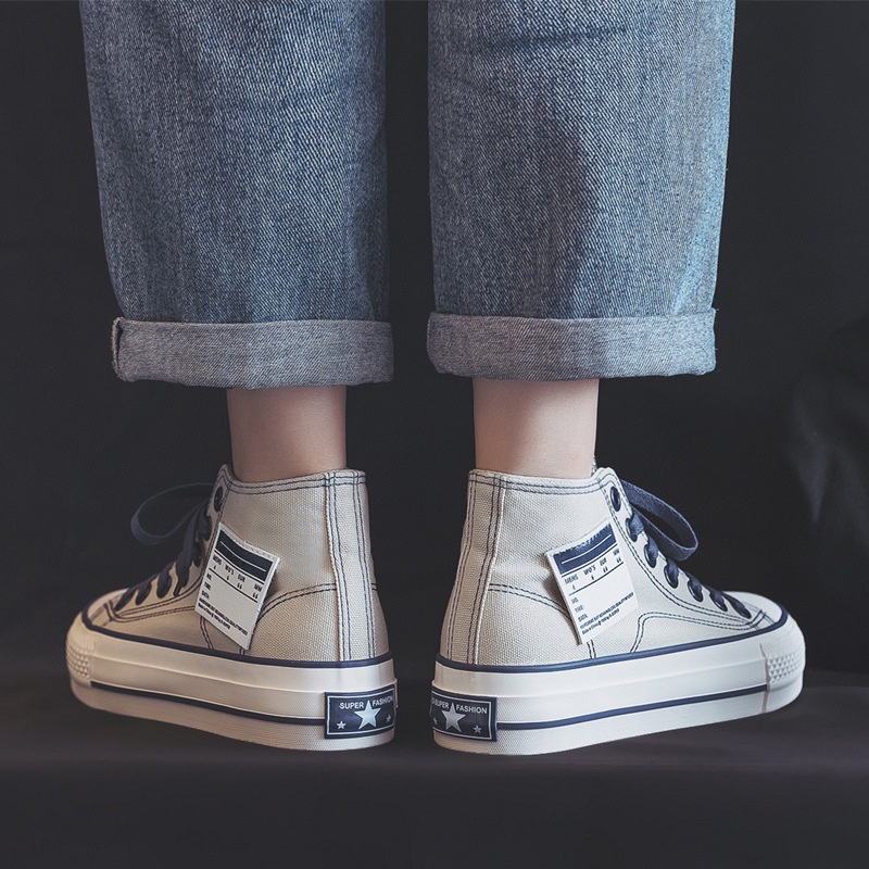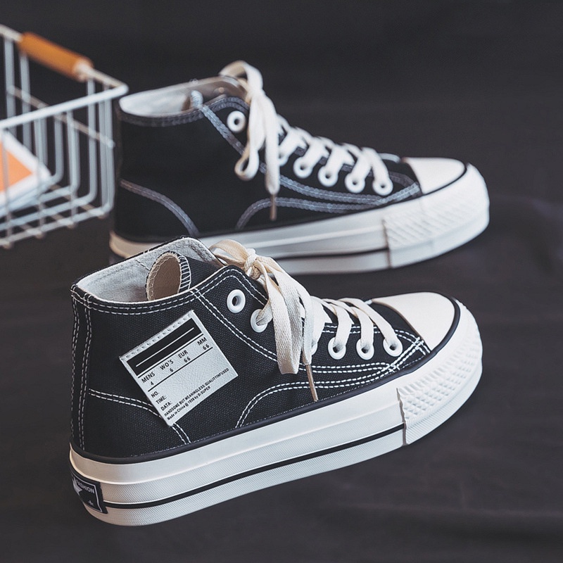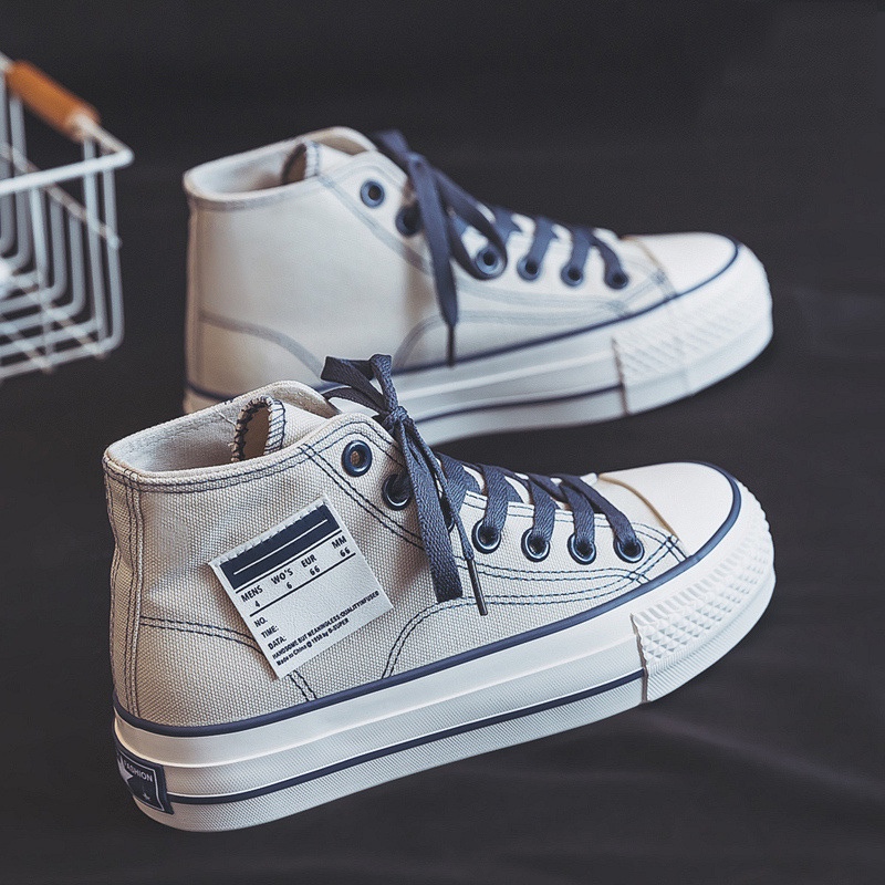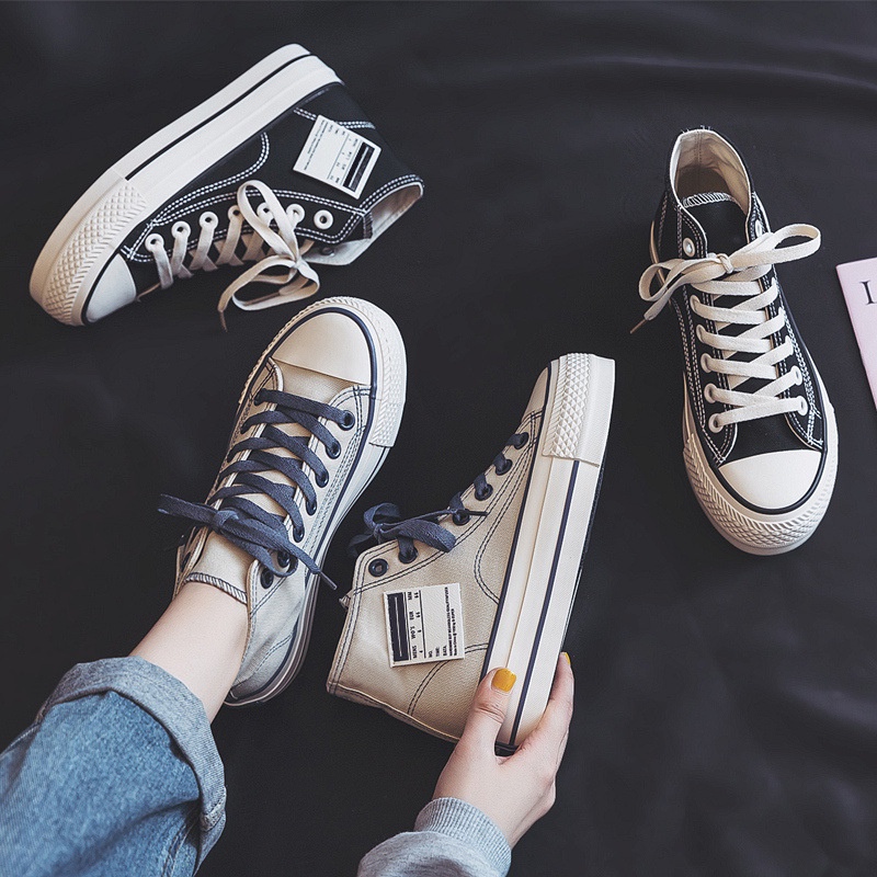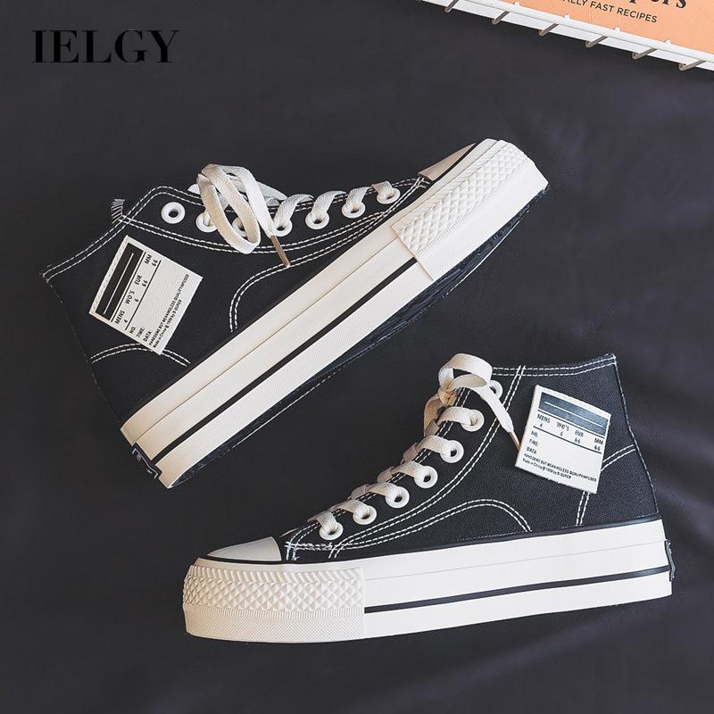 IELGY Sapatos De Lona Plataforma De Cano Alto Simples Com Cadarço Feminino Estilo De Rua