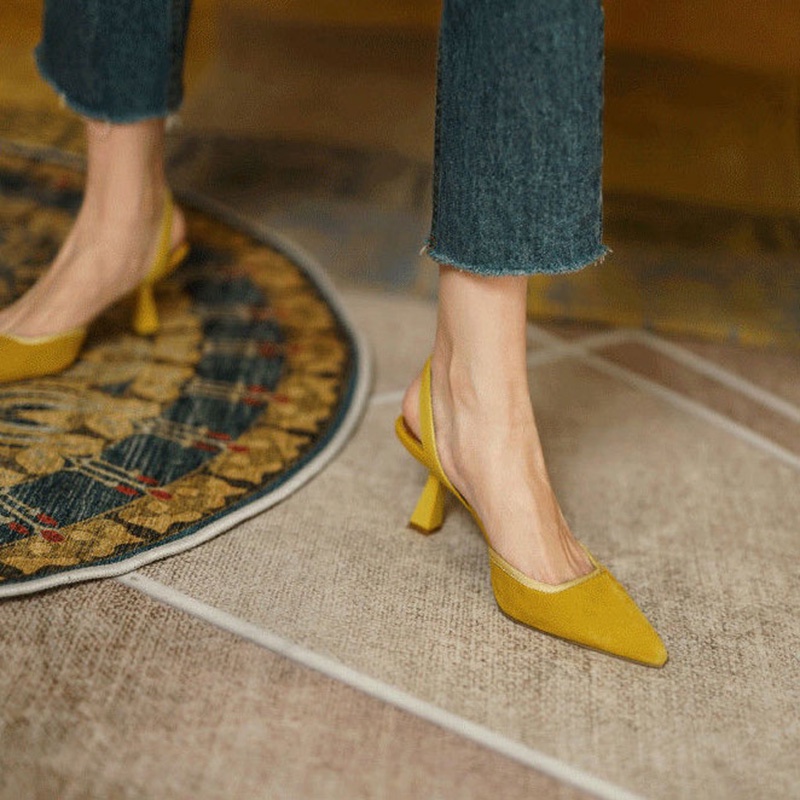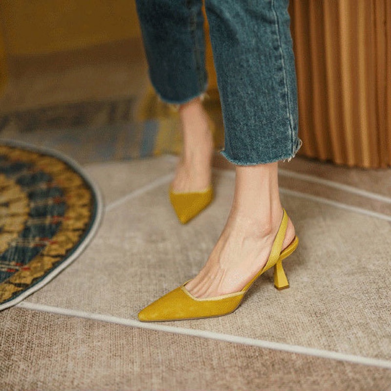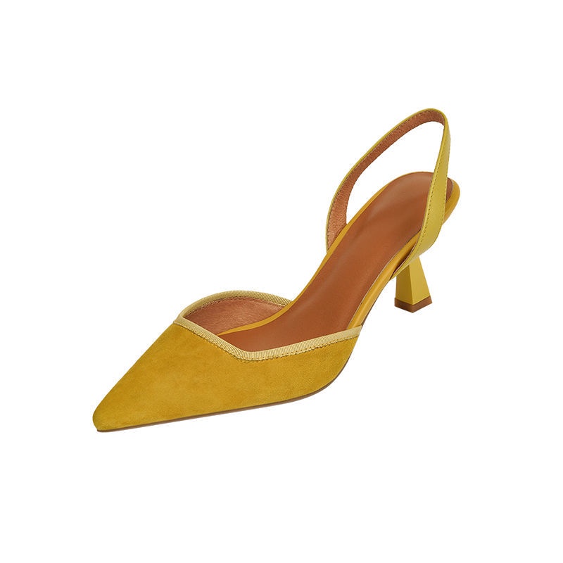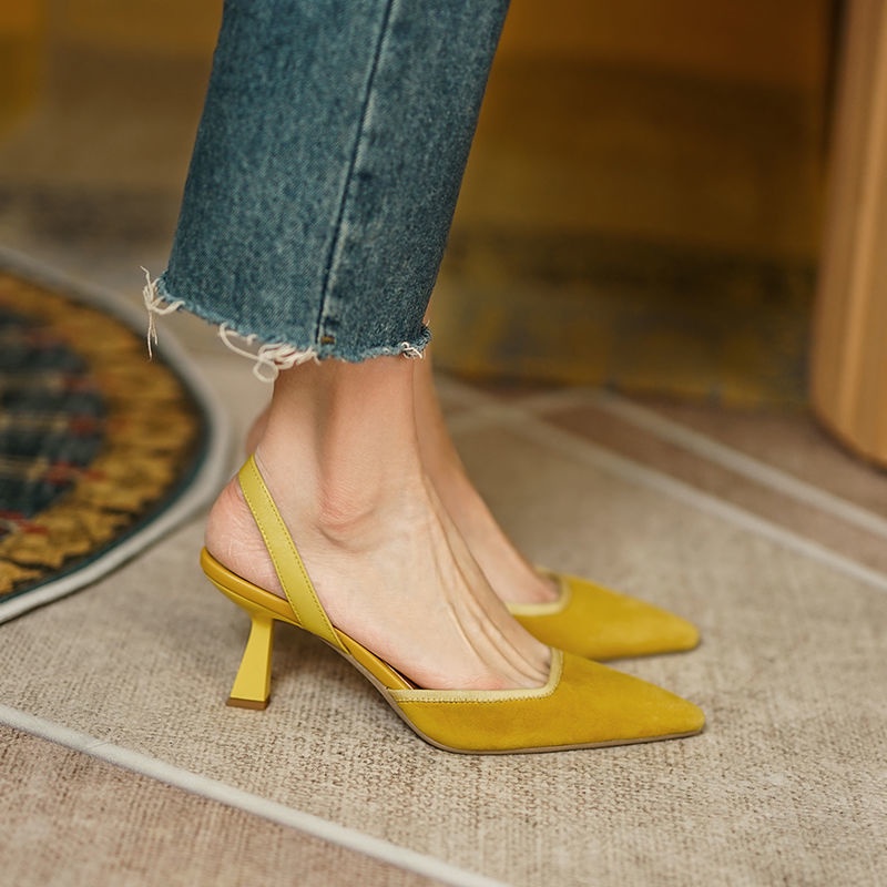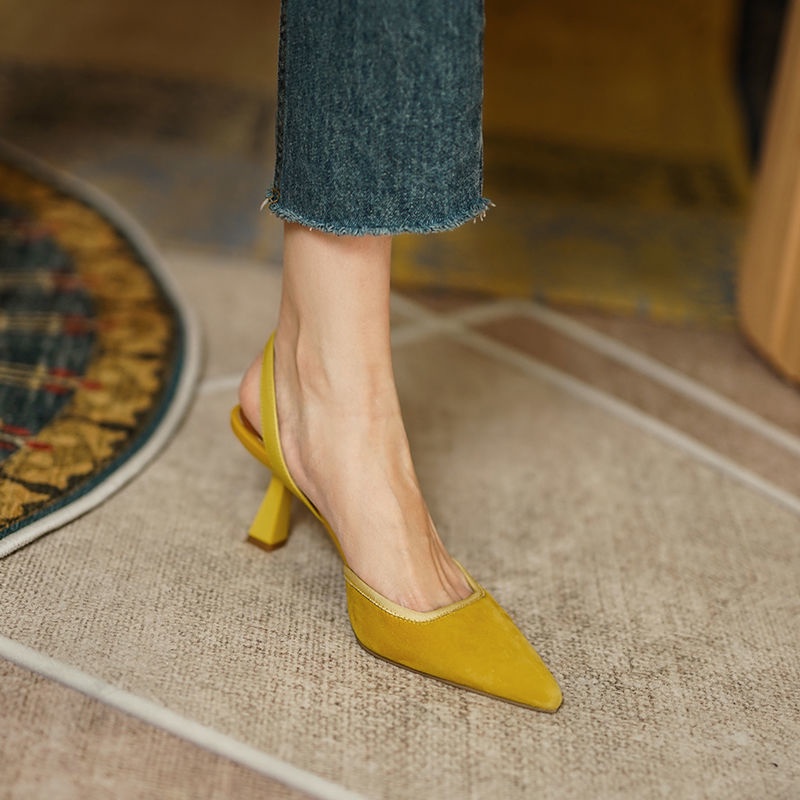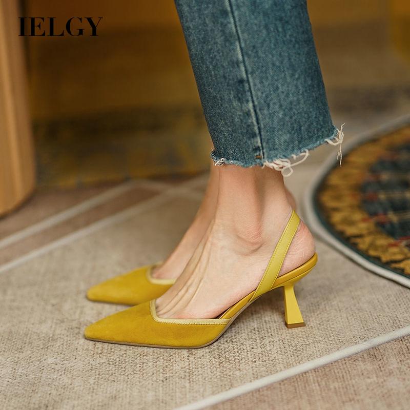 IELGY Sandálias Francesas De Salto Alto Com Bico Fino Palavra Feminina Temperamento Preto Pontiagudo Para Trás Espaço