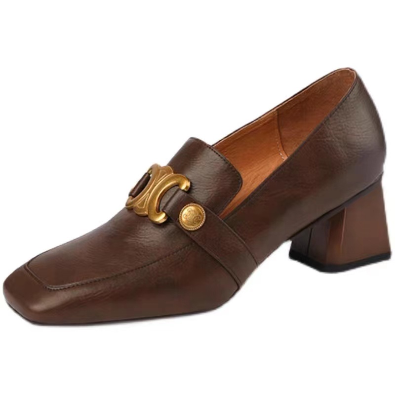 IELGY Calcanhar Quadrado Feminino Estilo retro Francês De Grosso Todos Combinam Com Sapatos De Couro