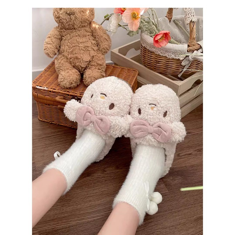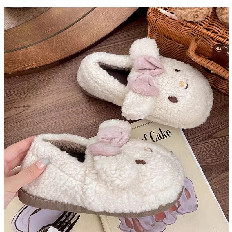 IELGY Sapatos De Lã De Fundo Grosso Fofos De Desenho Animado Femininos 2025 Chinelos De Algodão Quentes De Veludo Com