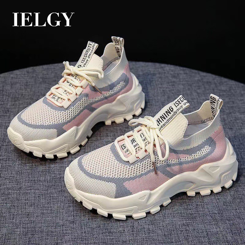 IELGY Novos Sneakers Tênis De Verão Femininos De Tecelagem De Malha Esportiva Estudante De Corrida Casual Leve 6CM