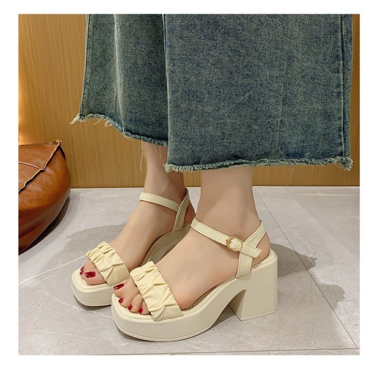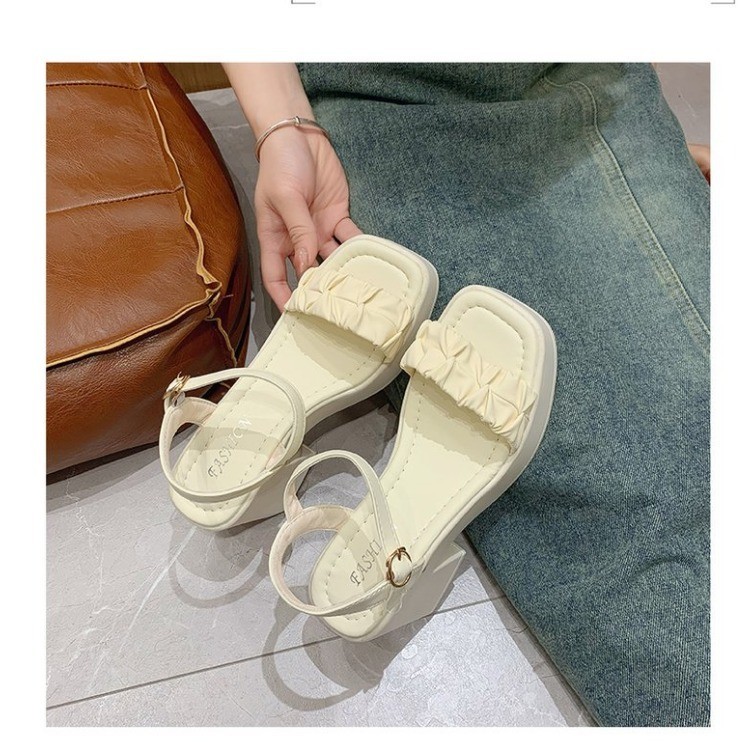 IELGY Khaki Estilo Romano Com Ranhuras De PU De Ponta Aberta Sandálias De Moda Fivela De Para Mulheres