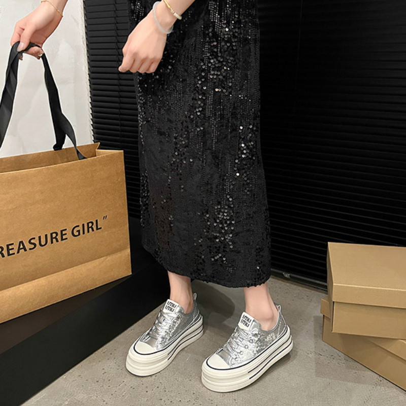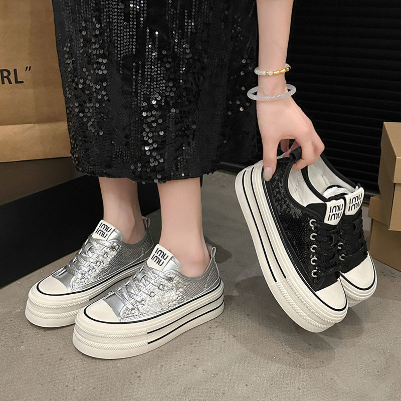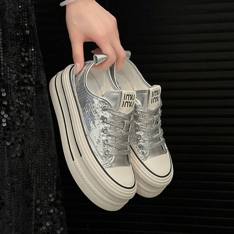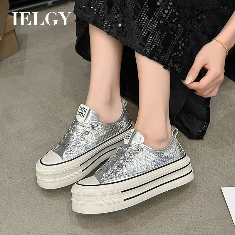 IELGY Novos Sapatos Populares De Lona Branca Sequenciada Para A Plataforma Feminina Solas Casual Trendy