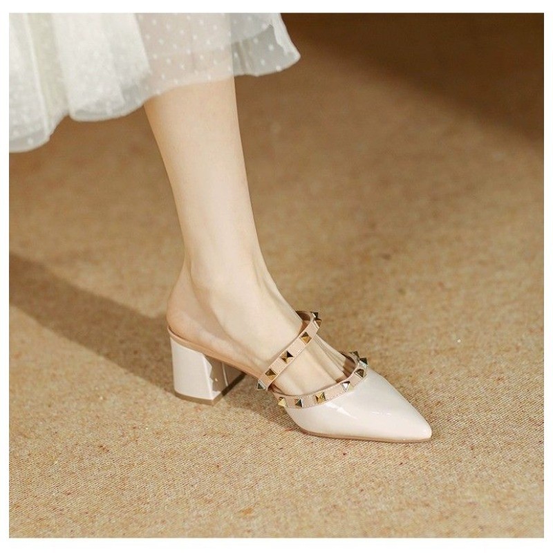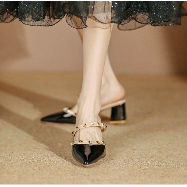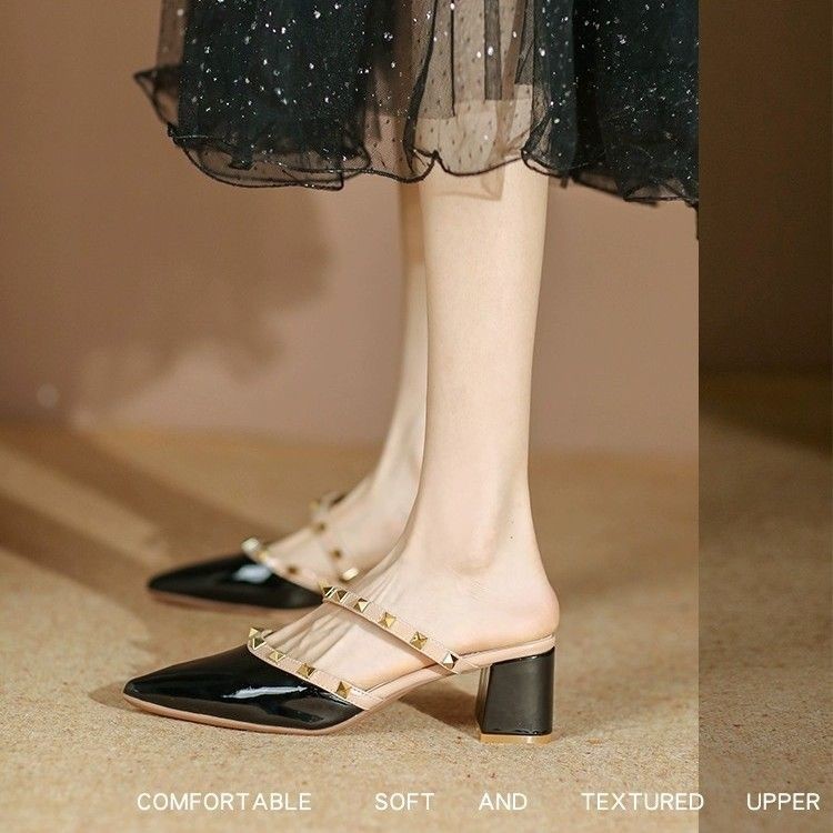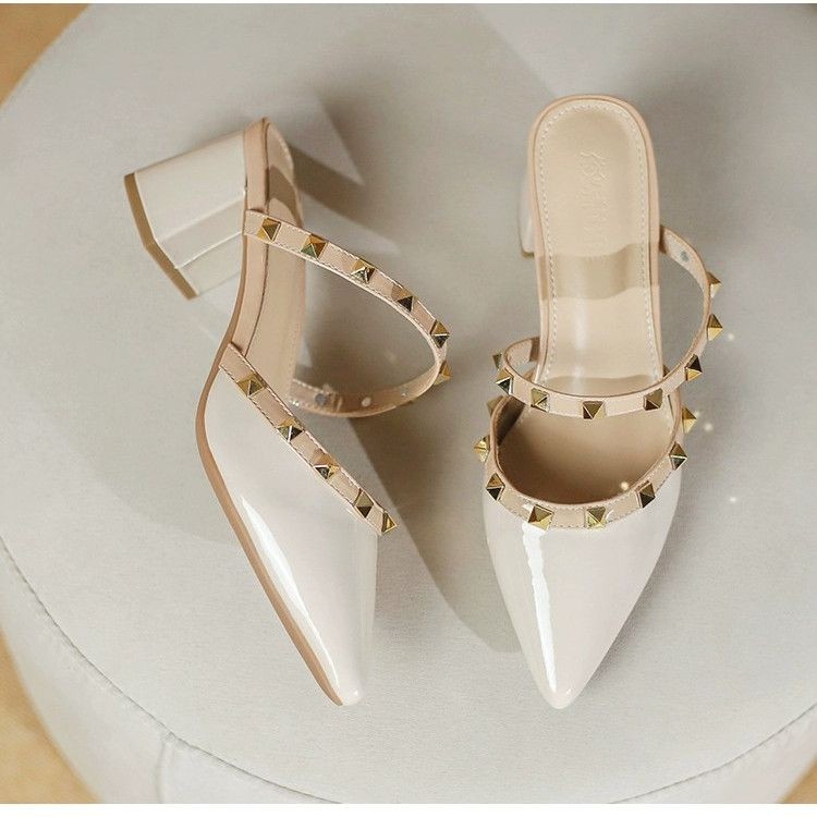 IELGY Elegante Luxo Verão Novo Rebite Branco De Salto Alto Meia Pantufas Mulheres