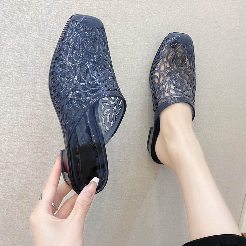 IELGY Sandálias Gelatinosas Transparentes Com Biqueira De Cristal , Moda casual Feminina De Verão , Salto Bloco De Altur