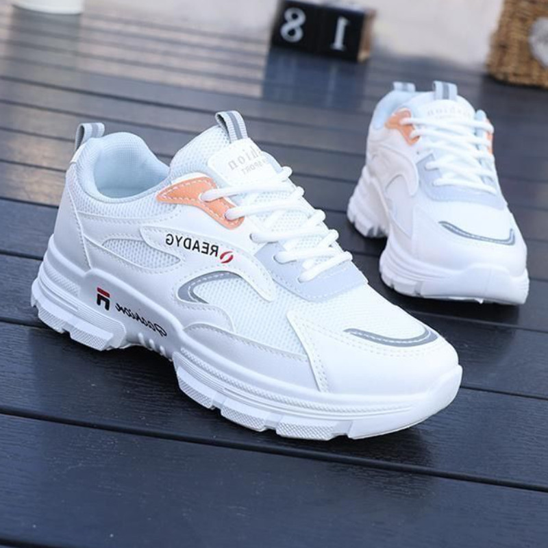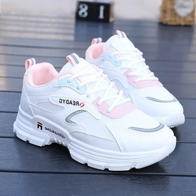 IELGY Moda casual Rosa Branco Papai Sapatos Femininos 2025 Coreano Versátil Malha Tênis Estudante Correndo