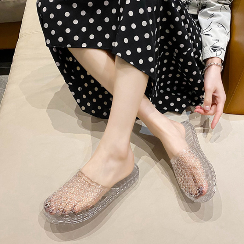 IELGY Chinelos De Cristal Semi-Dedos Ocos E Respiráveis Para Banheiros De Verão Femininos Sem Escorregamento
