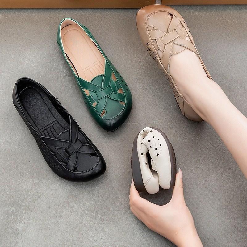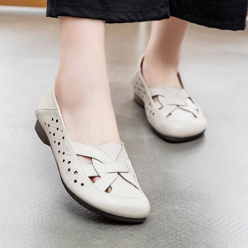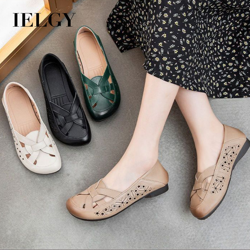 IELGY Couro Macio Sola Macia Novos Sapatos Caverna Sandálias Femininas Mãe Verão Confortáveis Respiráveis
