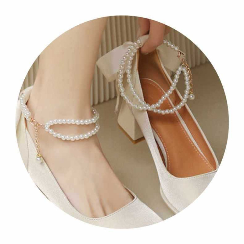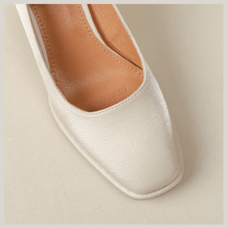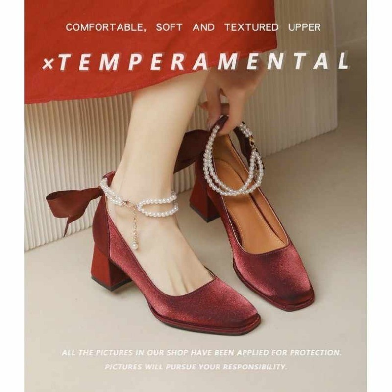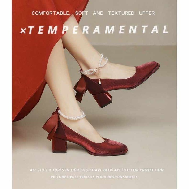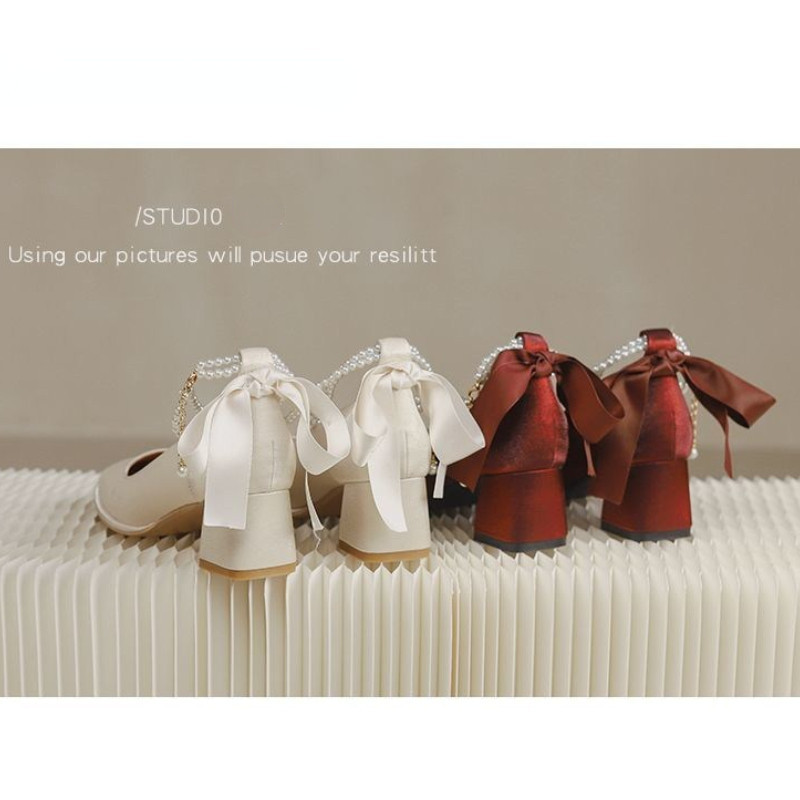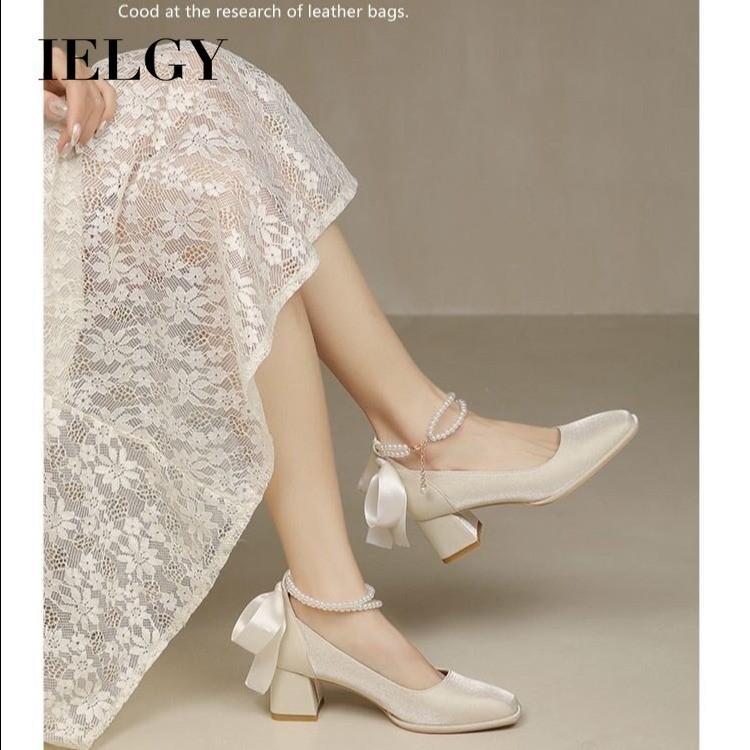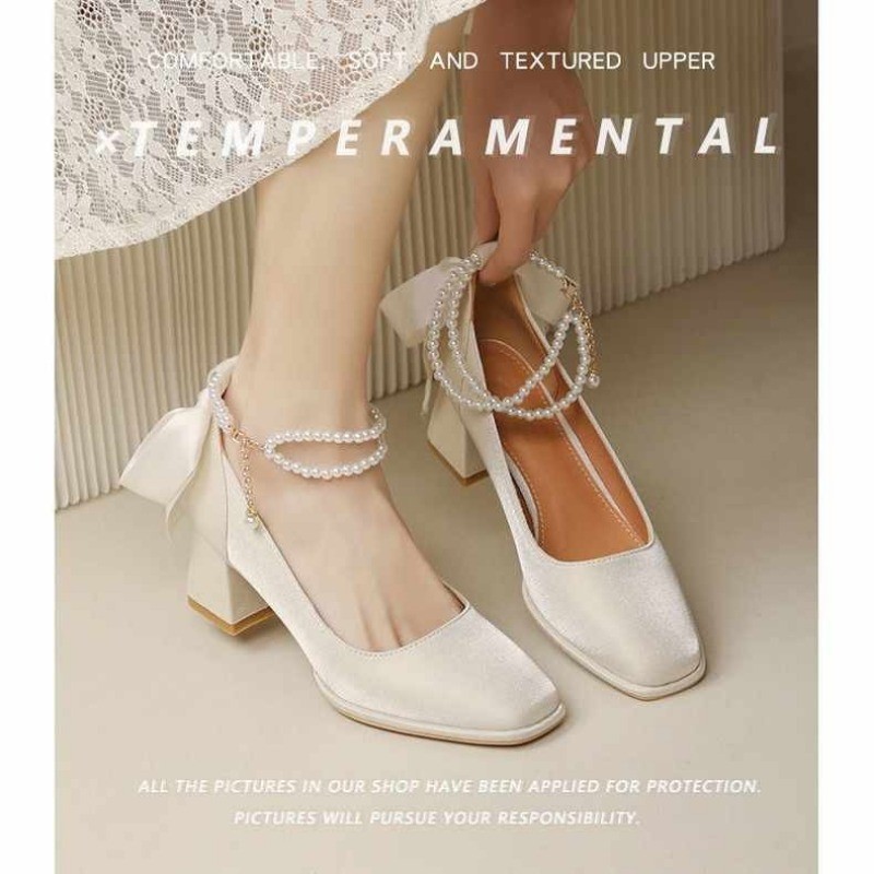 Sapatos De Casamento IELGY Bloco Vermelho Calcanhar Quadrado De Nó De Borboleta De Salto Alto Mulheres Branco Duas