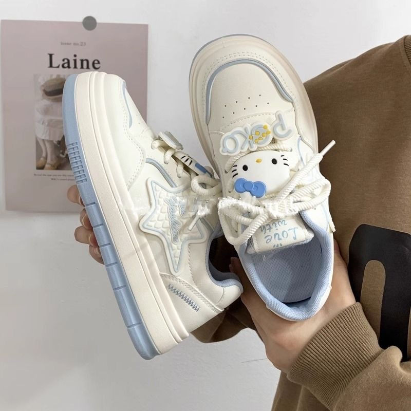 IELGY Blue Star Big Toe Sapatos Brancos Sola Plataforma Feminina 2025 Novo Versátil Estudante Casual Sportsboard Shoes