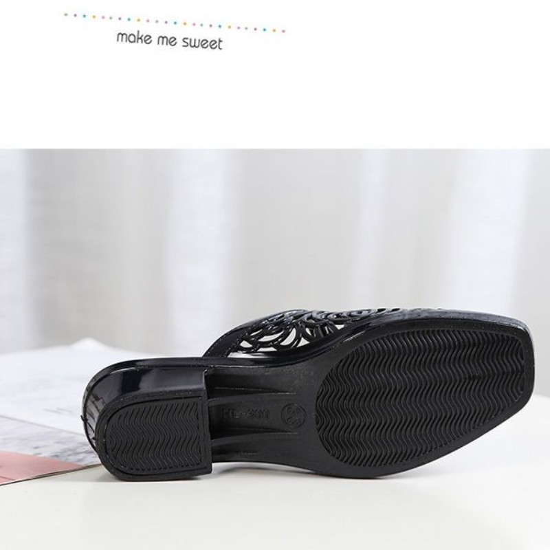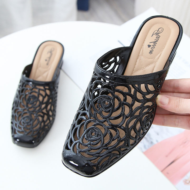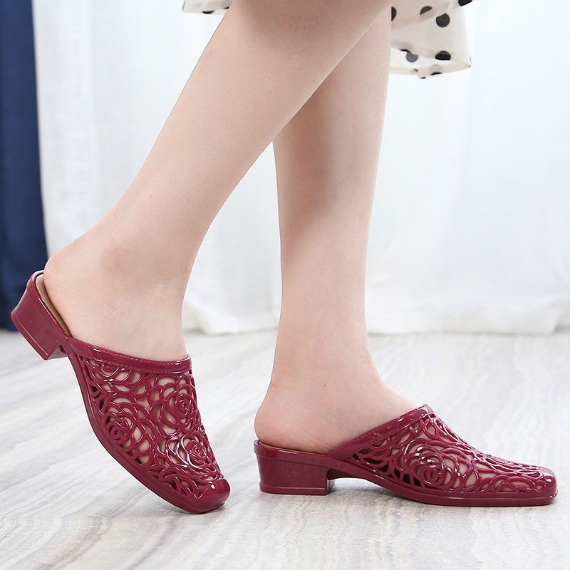 Sandálias Elegantes IELGY Para Mulheres Praia Preguiçoso Semi-Arrastado Baotou Salto Bloco Usado Ao Ar Livre
