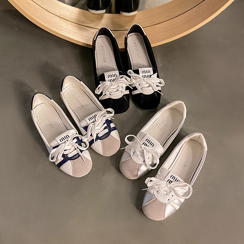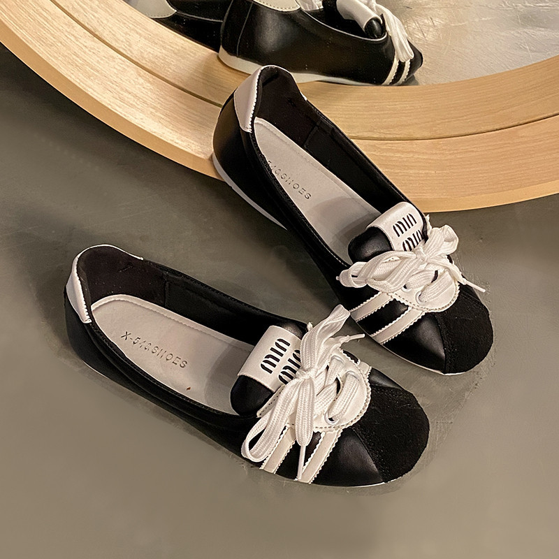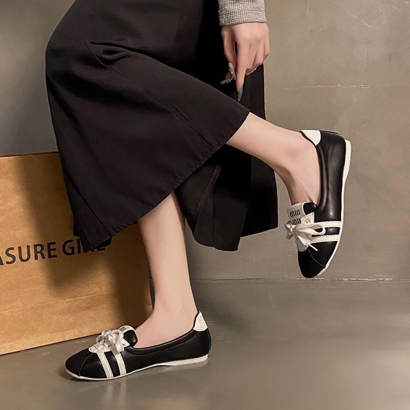 IELGY Sapatos Planos Franceses retro Para Mulheres Novo Estilo Com Saia Deslizante Brancos