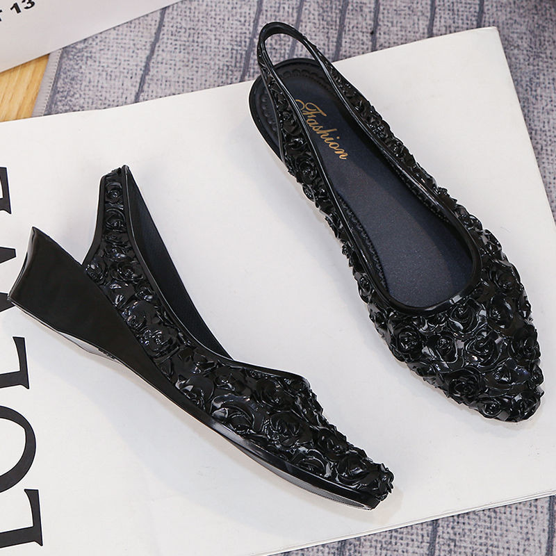 IELGY Sandálias Florais Elegantes Femininas De Verão Antiderrapantes Com Saia Bico Fino Salto Cunha Simples E Casual