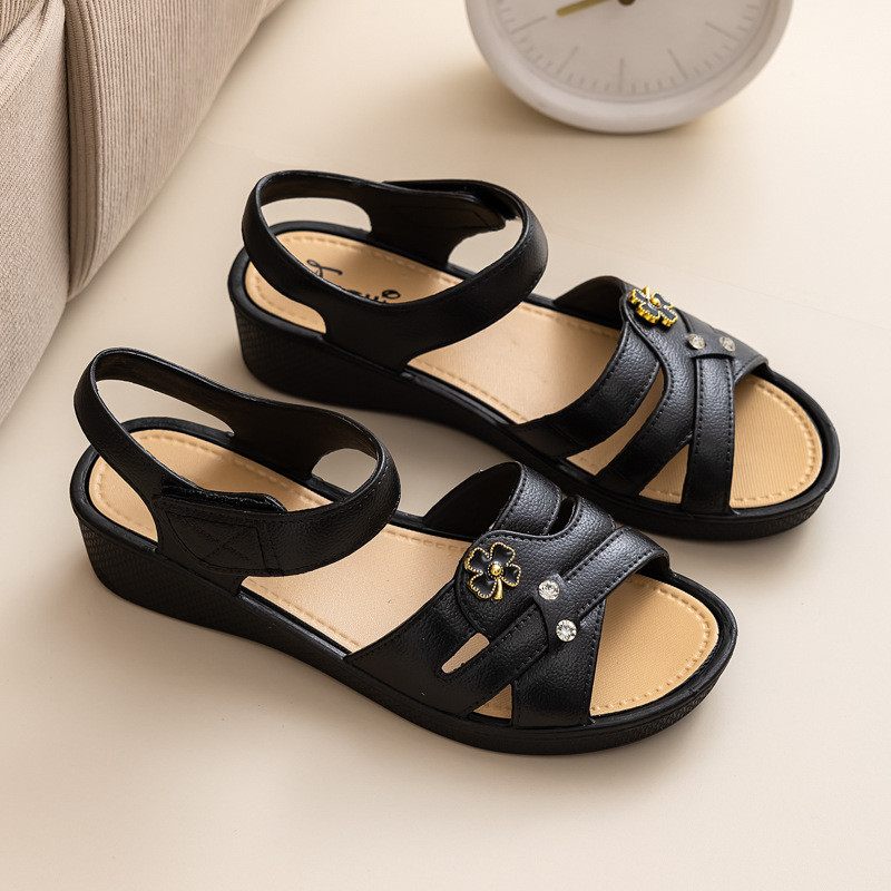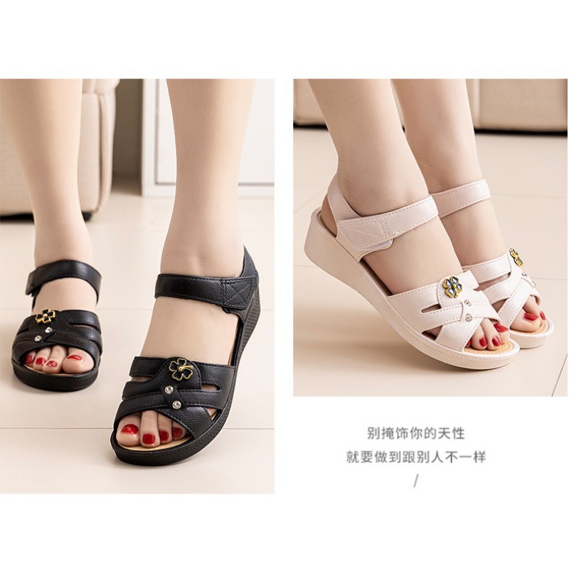 IELGY 2025 Sandálias De Velcro Femininas Verão Novo Couro Macio Salto Cunha Confortável Sapatos Femininos Planos