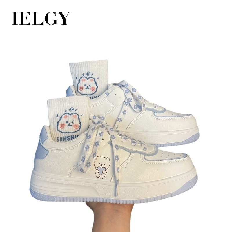 IELGY Novo Coreano Cor Sólida Urso Branco casual Dedo Do Pé Redondo Sola Plana Tênis Estudante