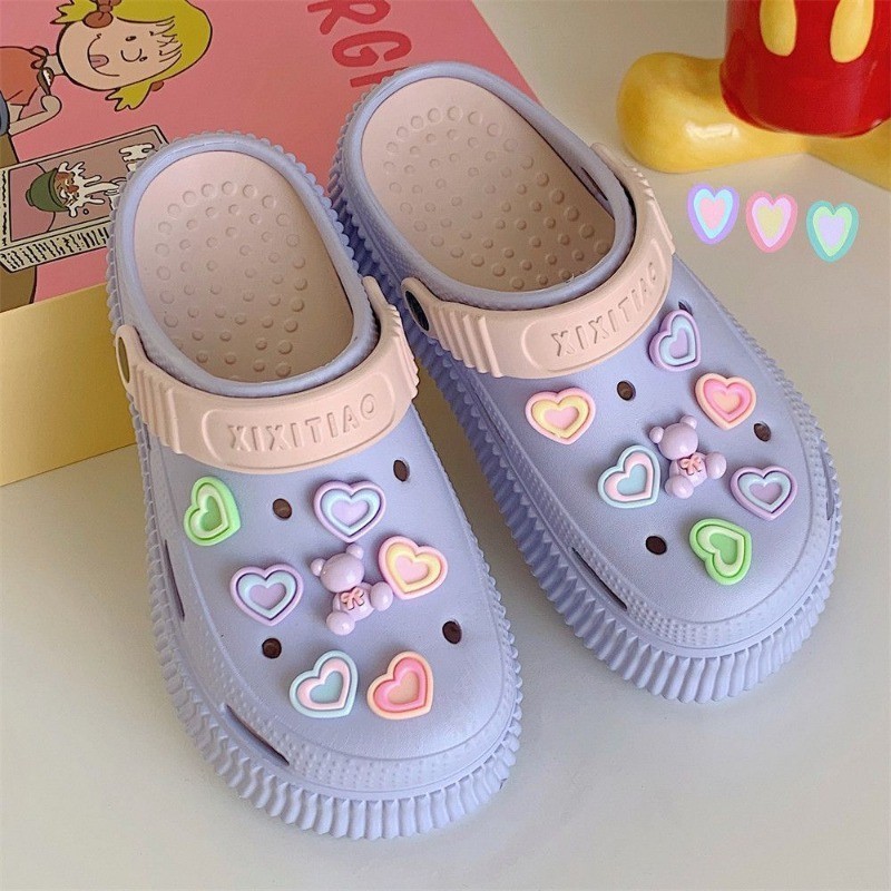 IELGY Férias Sem Deslizamento Sandálias Baotou De Sola Grossa Mulheres Doce Amor