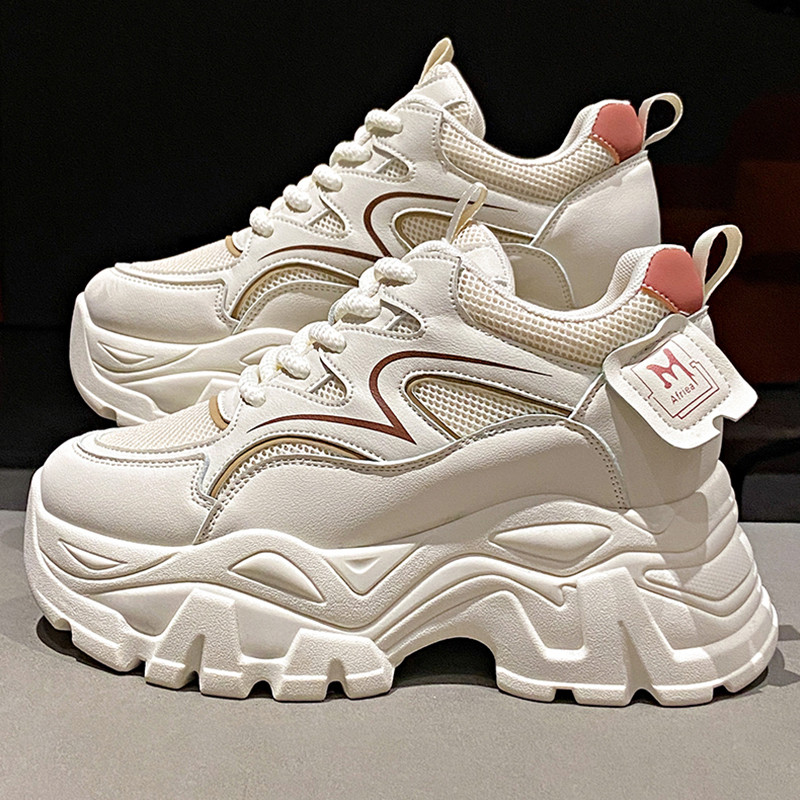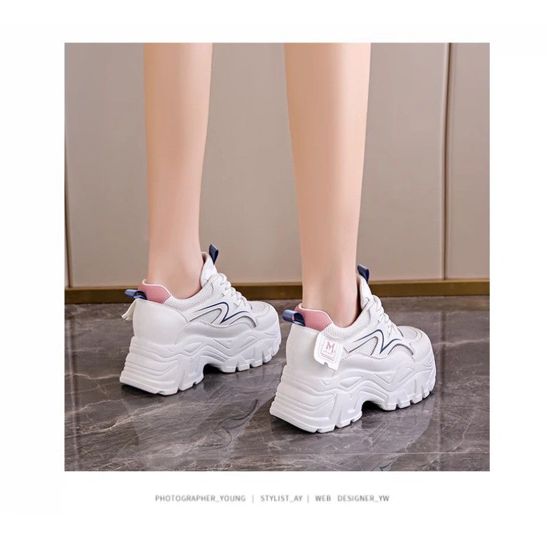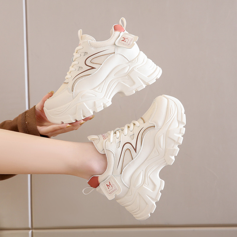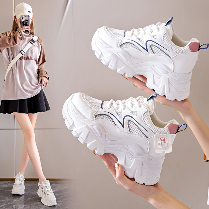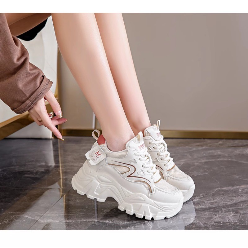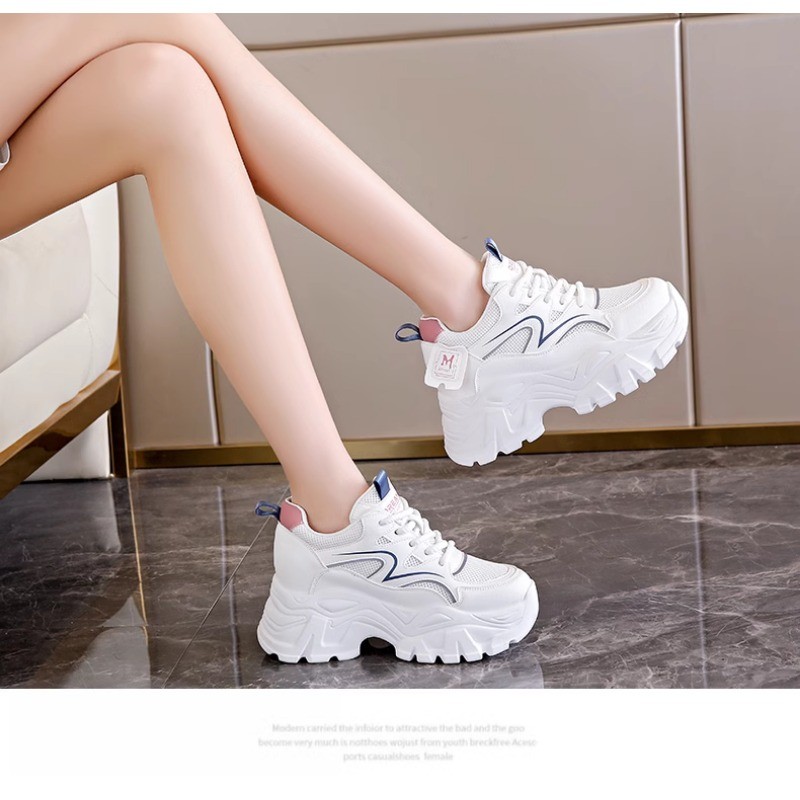 IELGY Sapatos Femininos Verão Malha Respirável Tênis Plataforma Sola Aumentar Altura Branca Pai