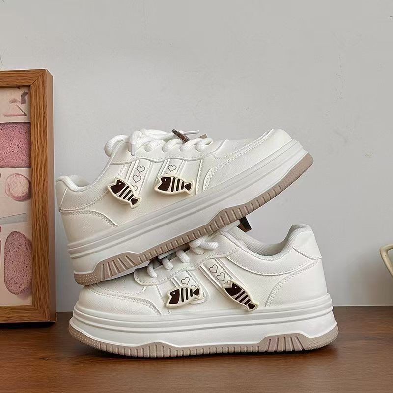 IELGY Nicho Breadshoes Feminino Plataforma Peixe Versátil Tênis Moderno